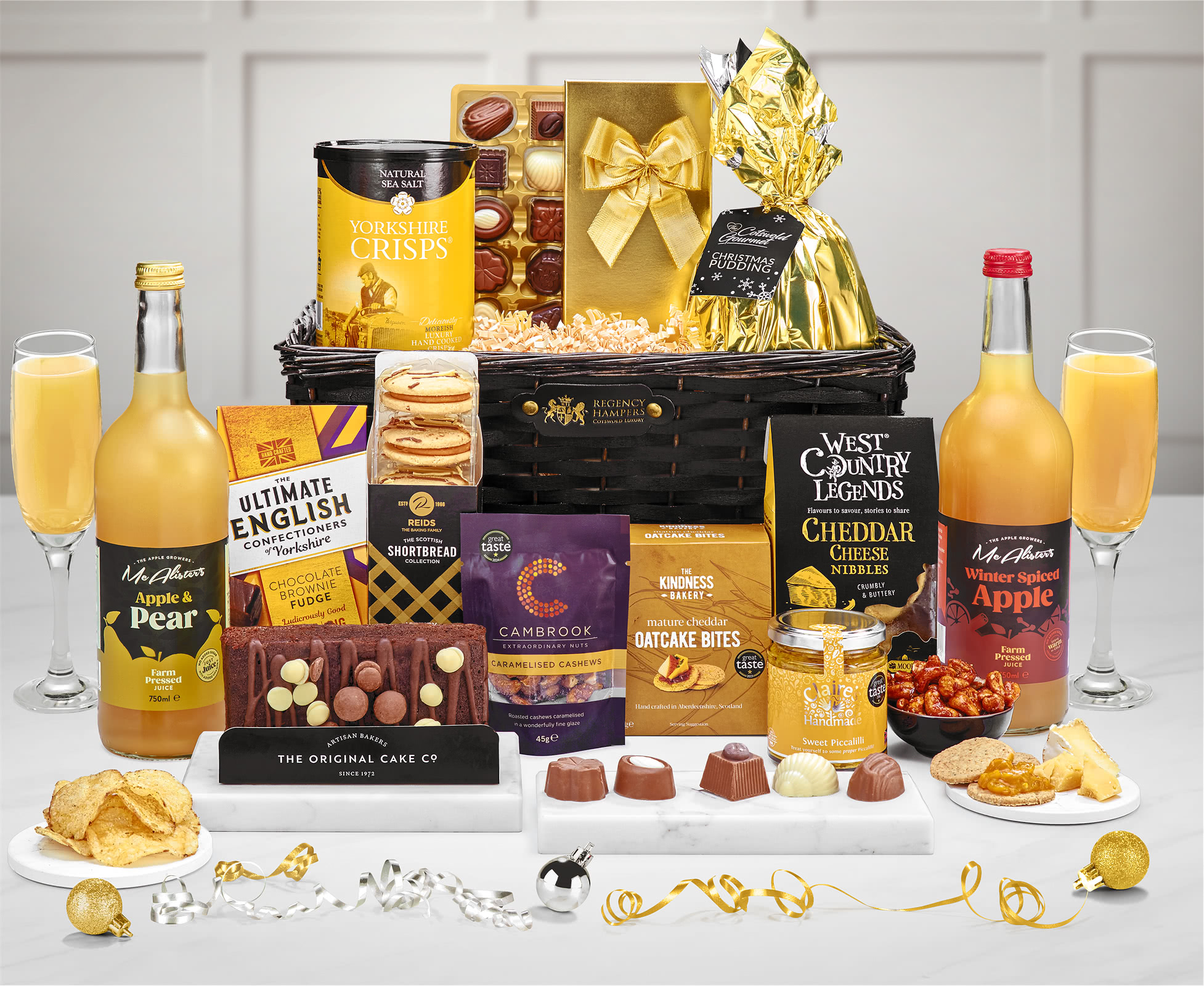 Gourmet Christmas Selection: From traditional Cotswold Christmas pudding to luxury Belgian chocolate pralines and indulgent chocolate truffle cake, this hamper delivers festive flavours aplenty. Savoury treats include farmhouse cheddar nibbles, caramelised cashews, and handmade piccalilli, creating the perfect balance for holiday entertaining.