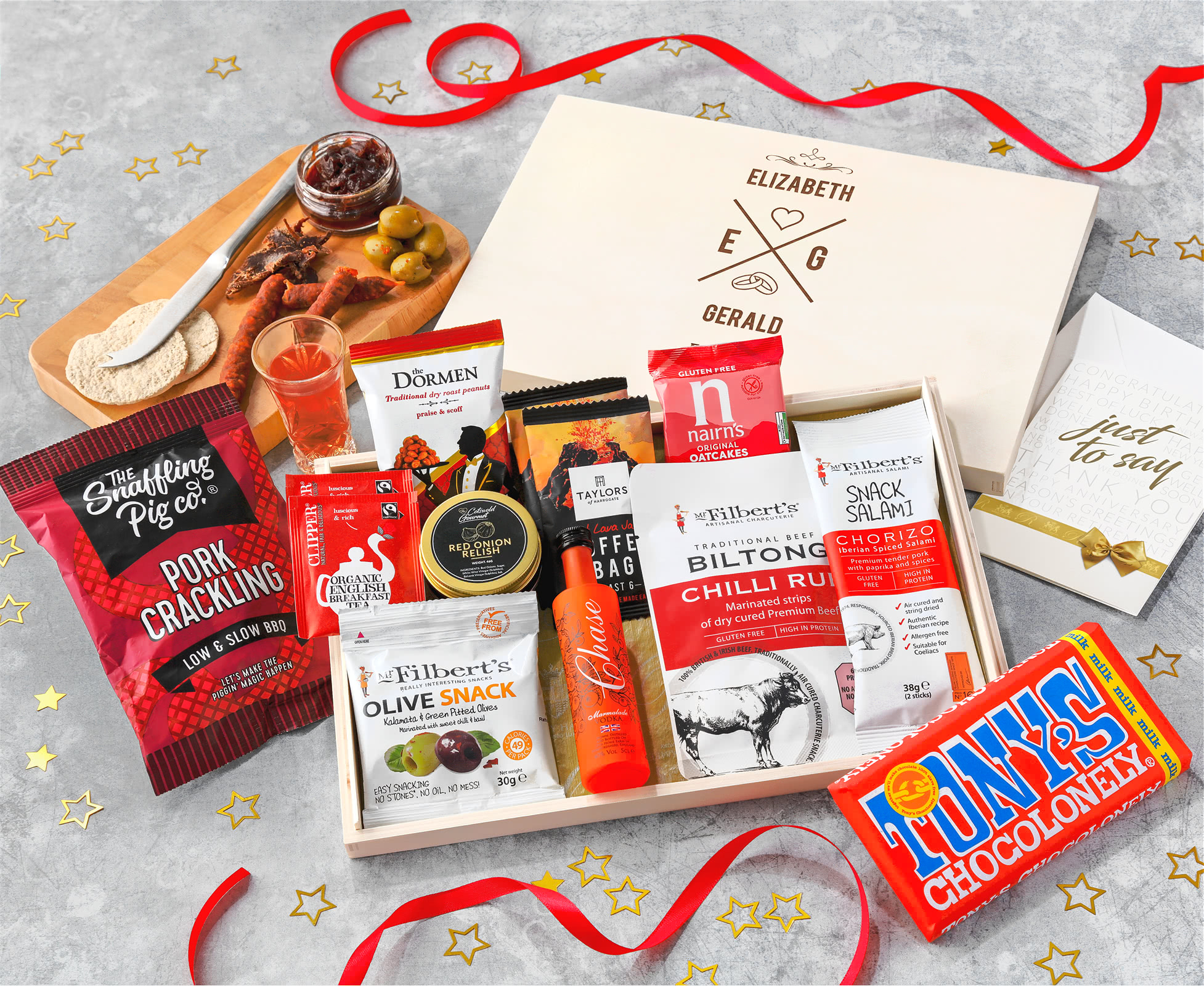 Anniversary Gentleman's Coffee & Spicy Bites Letterbox Hamper With Marmalade Vodka