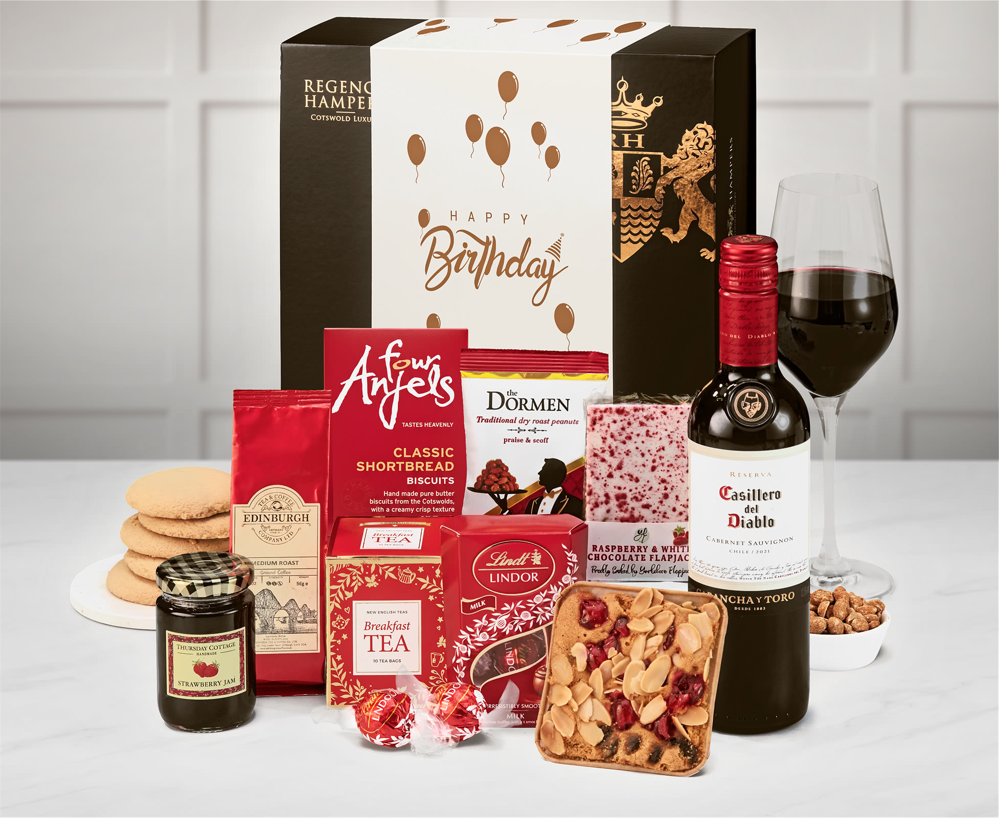Birthday Delicious Delights Box with Red Wine