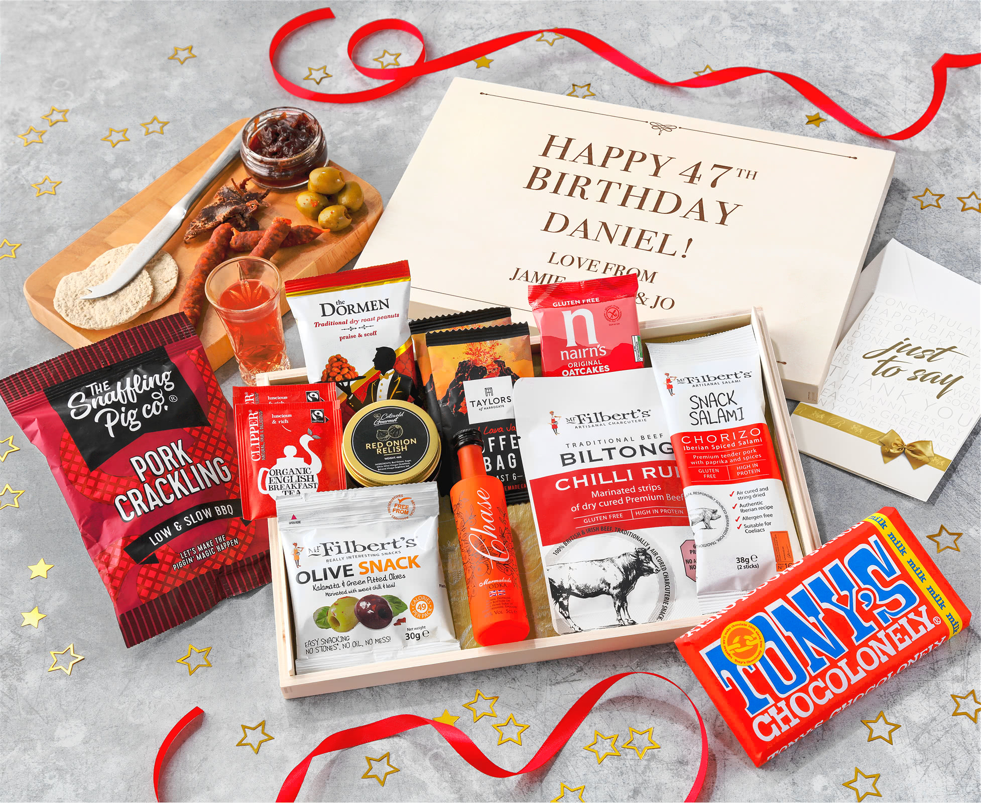 Birthday Gentleman's Coffee & Spicy Bites Letterbox Hamper With Marmalade Vodka