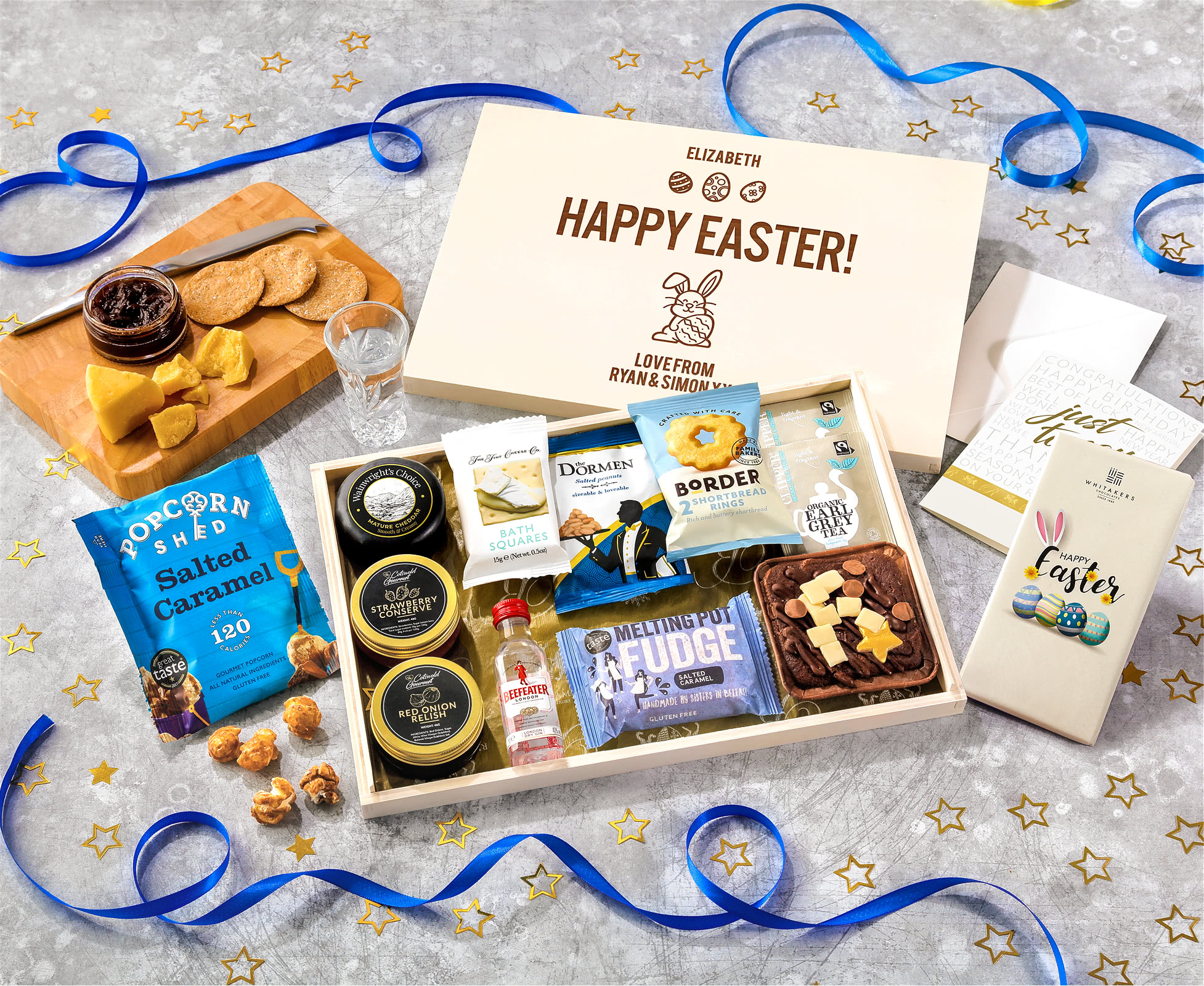 Easter Biscuit, Cheese & Cake Tea Time Letterbox Hamper With Beefeater Gin