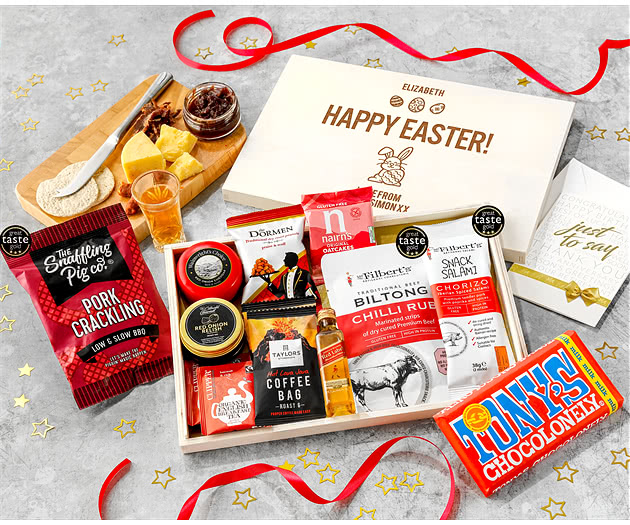 Easter Coffee, Chilli Snacks & Cheese Letterbox Hamper With Johnnie Walker Whisky