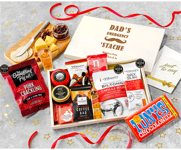Father's Day Coffee, Chilli Snacks & Cheese Letterbox Hamper With Johnnie Walker Whisky