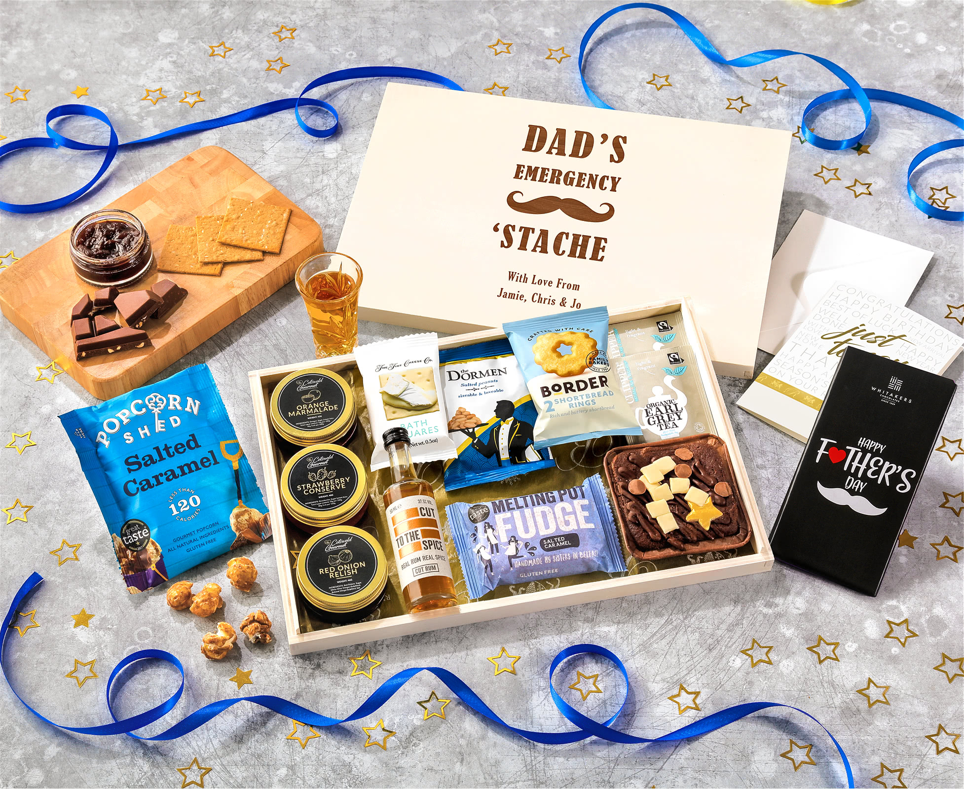 Father's Day Tea Time Cake, Chocolate & Nibbles Letterbox Hamper With Spiced Rum