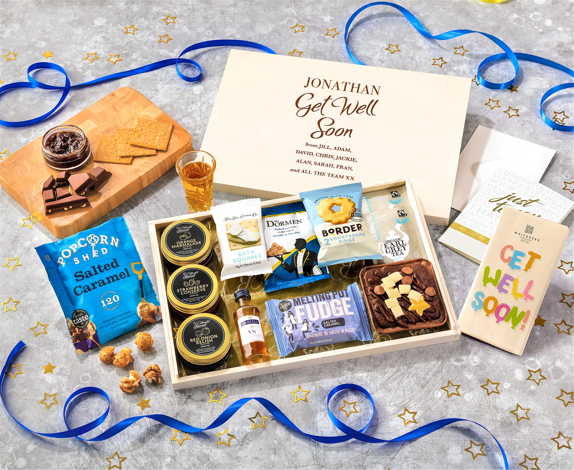 Get Well Soon Tea Time Cake, Chocolate & Nibbles Letterbox Hamper With Martell Cognac