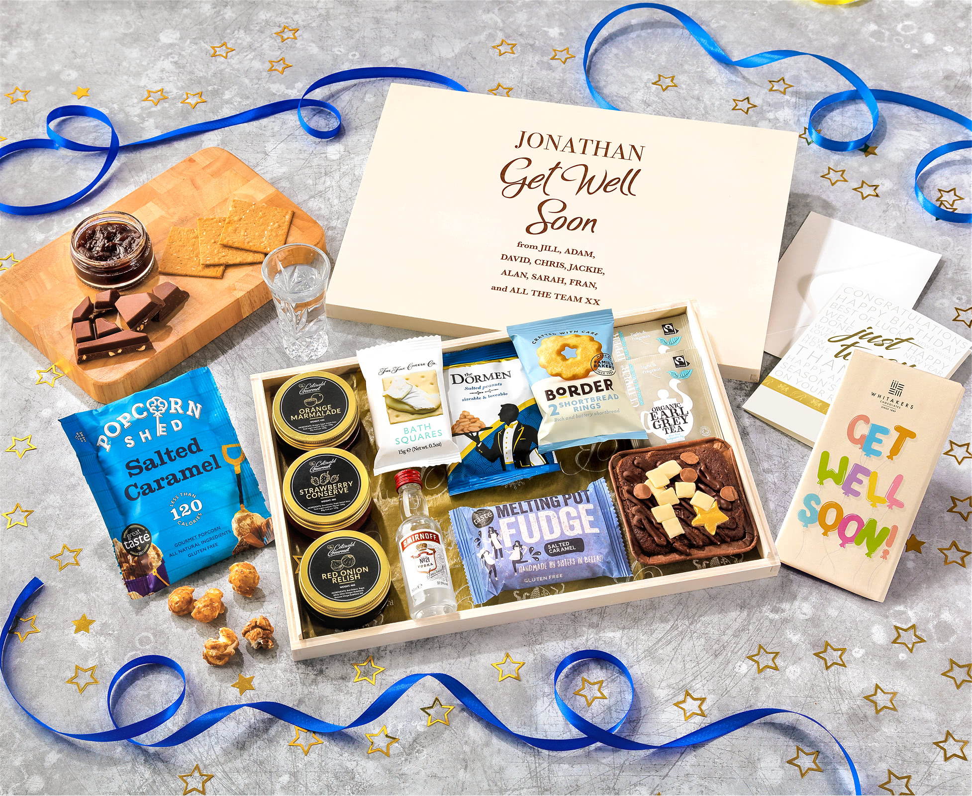 Get Well Soon Tea Time Cake, Chocolate & Nibbles Letterbox Hamper With Smirnoff Vodka