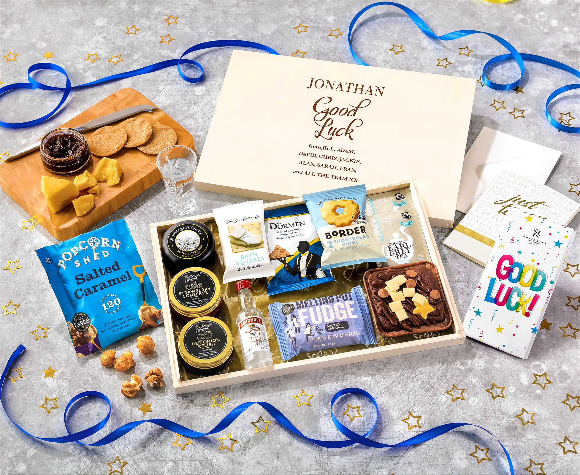 Good Luck Biscuit, Cheese & Cake Tea Time Letterbox Hamper With Smirnoff Vodka