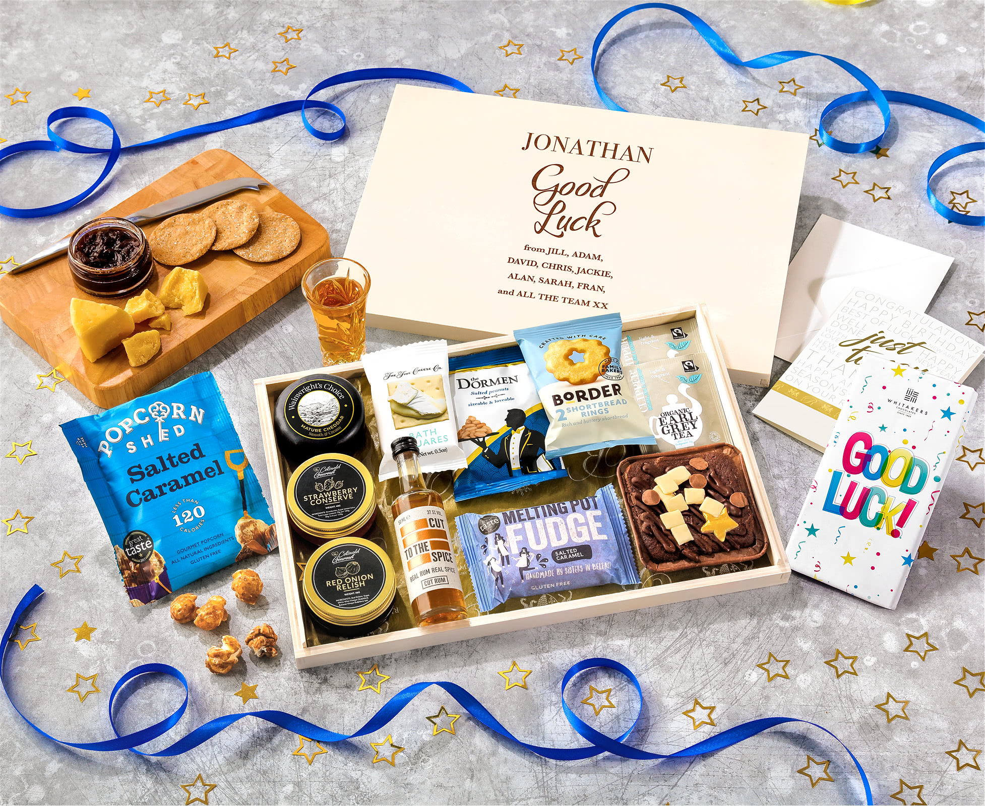 Good Luck Biscuit, Cheese & Cake Tea Time Letterbox Hamper With Spiced Rum