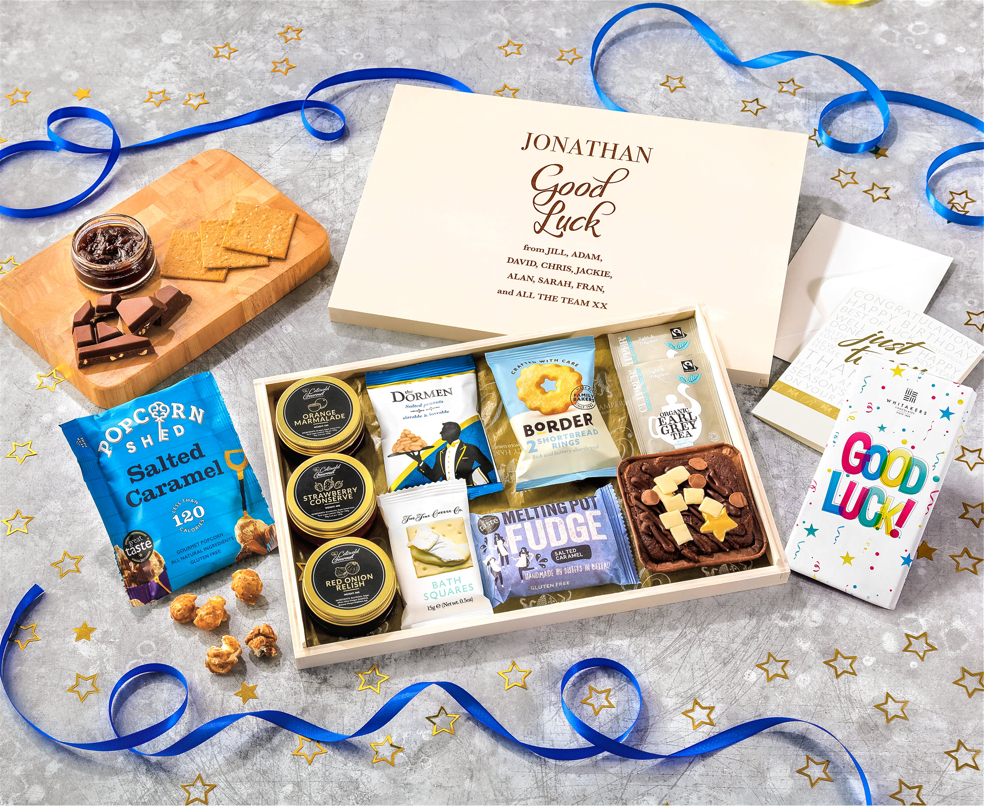 Good Luck Tea Time Cake, Chocolate & Nibbles Letterbox Hamper