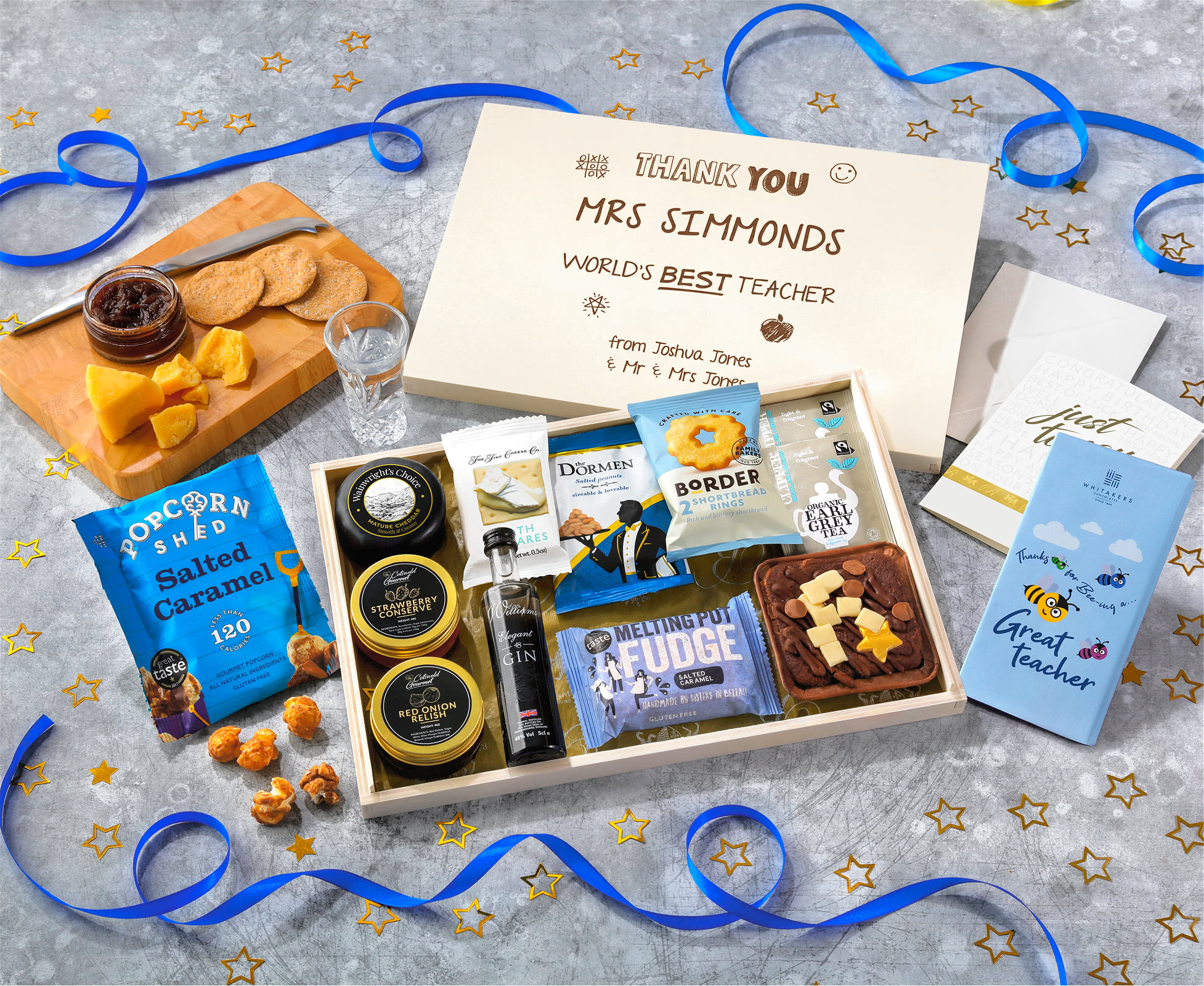 Great Teacher Biscuit, Cheese & Cake Tea Time Letterbox Hamper With Williams Gin