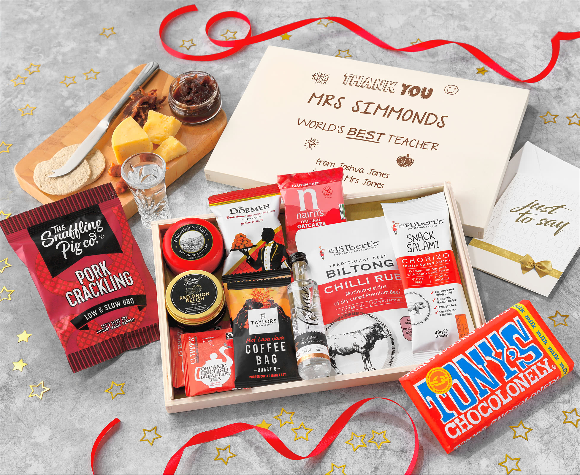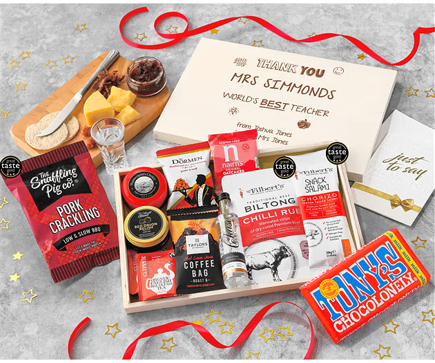 Great Teacher Coffee, Chilli Snacks & Cheese Letterbox Hamper With Chase Vodka