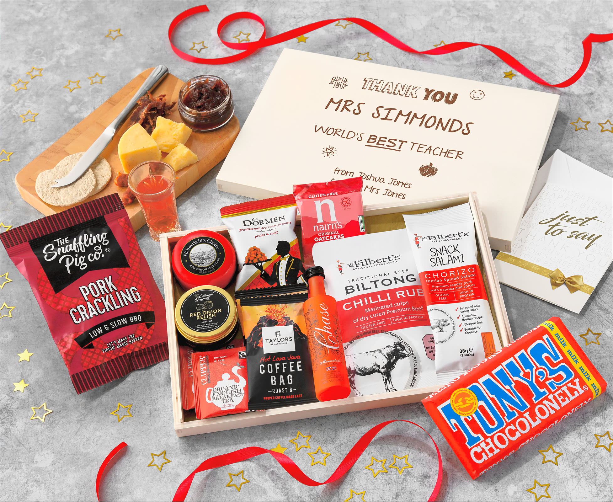 Great Teacher Coffee, Chilli Snacks & Cheese Letterbox Hamper With Marmalade Vodka