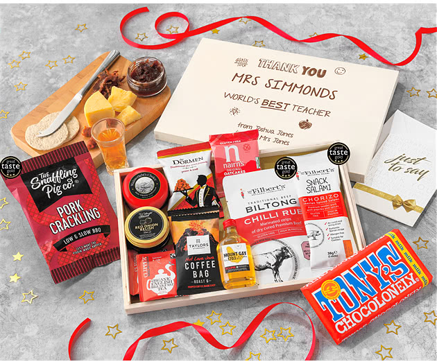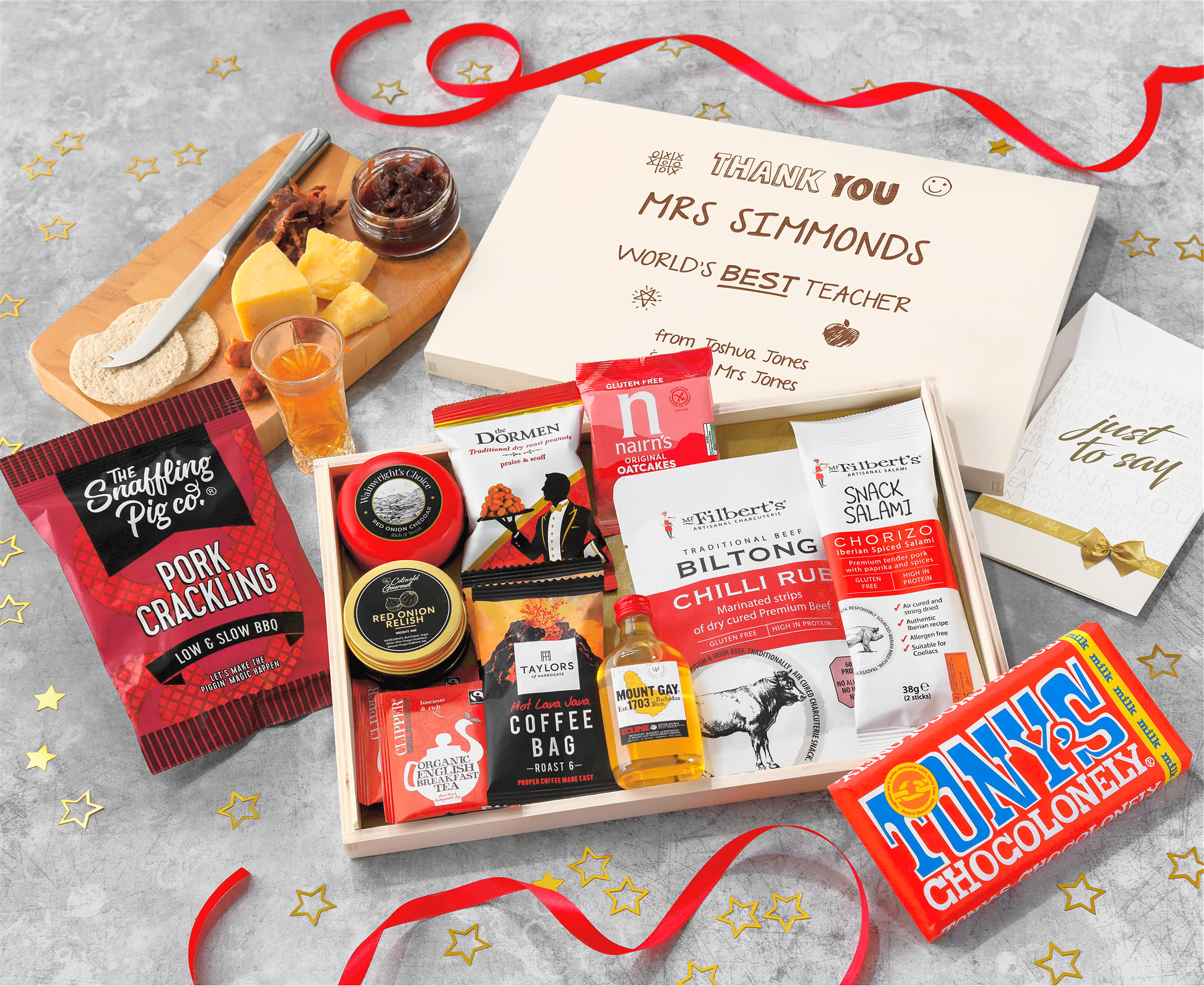 Great Teacher Coffee, Chilli Snacks & Cheese Letterbox Hamper With Mount Gay Rum