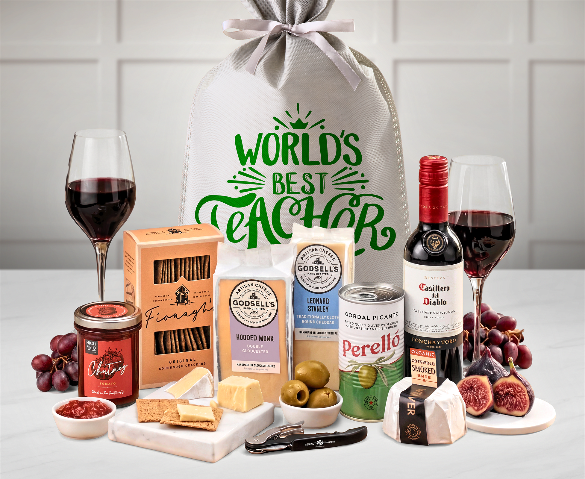Great Teacher Cotswold Artisan Cheese & Wine Tasting Gift with Red Wine