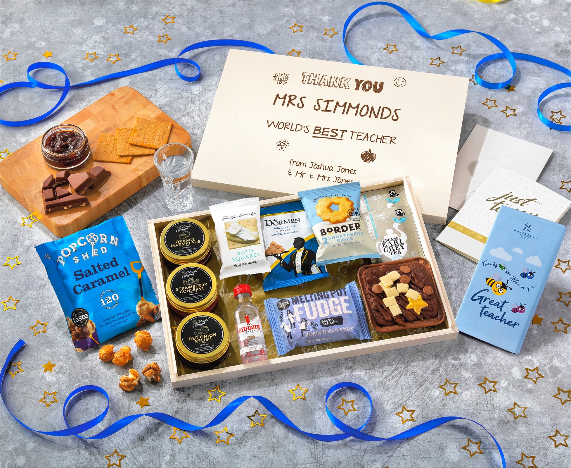 Great Teacher Tea Time Cake, Chocolate & Nibbles Letterbox Hamper With Beefeater Gin