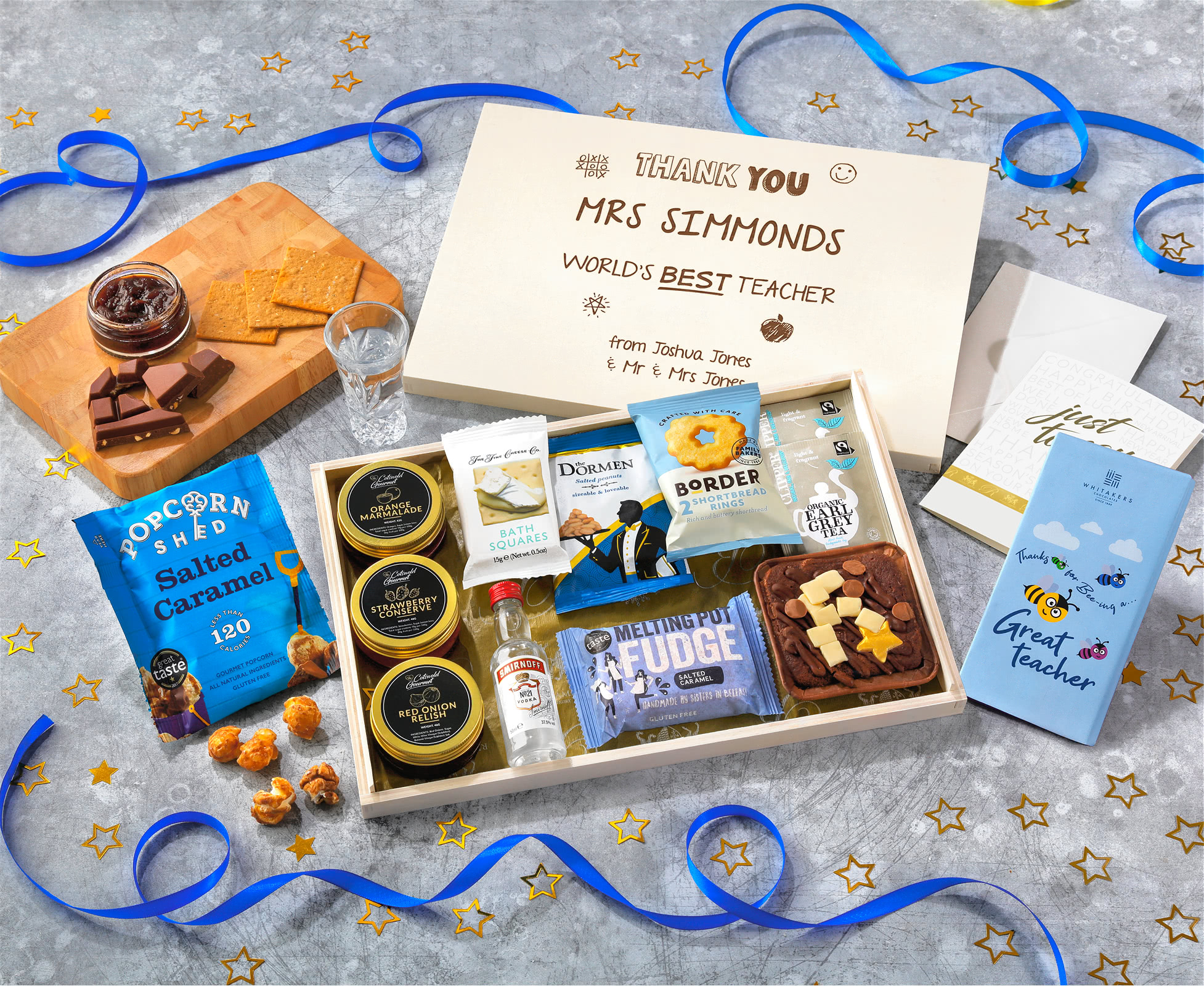 Great Teacher Tea Time Cake, Chocolate & Nibbles Letterbox Hamper With Smirnoff Vodka
