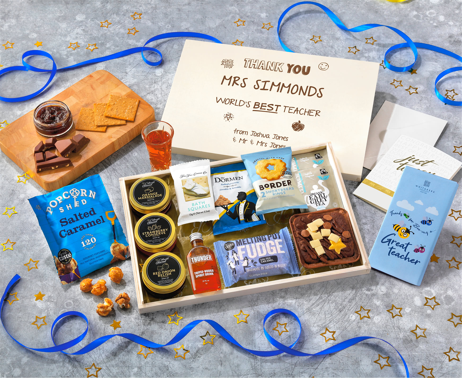 Great Teacher Tea Time Cake, Chocolate & Nibbles Letterbox Hamper With Toffee Vodka