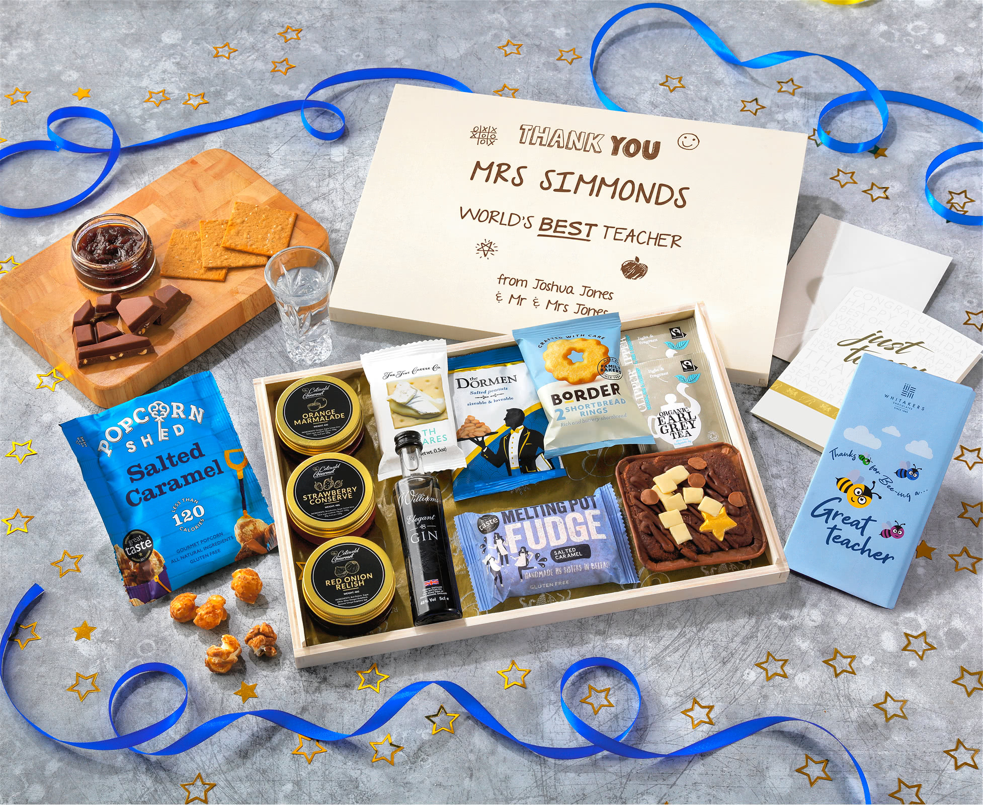 Great Teacher Tea Time Cake, Chocolate & Nibbles Letterbox Hamper With Williams Gin