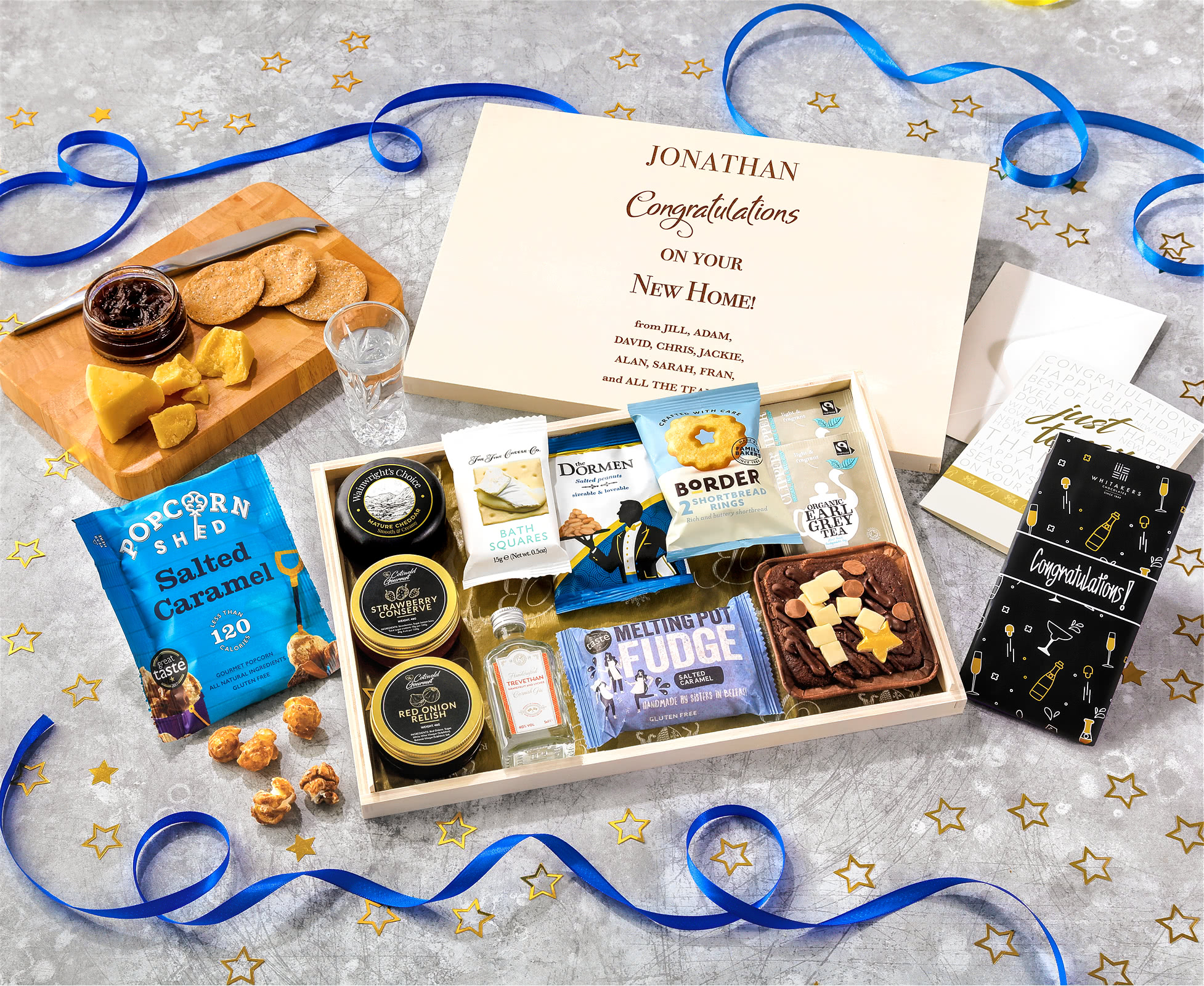 Housewarming Biscuit, Cheese & Cake Tea Time Letterbox Hamper With Cornish Gin