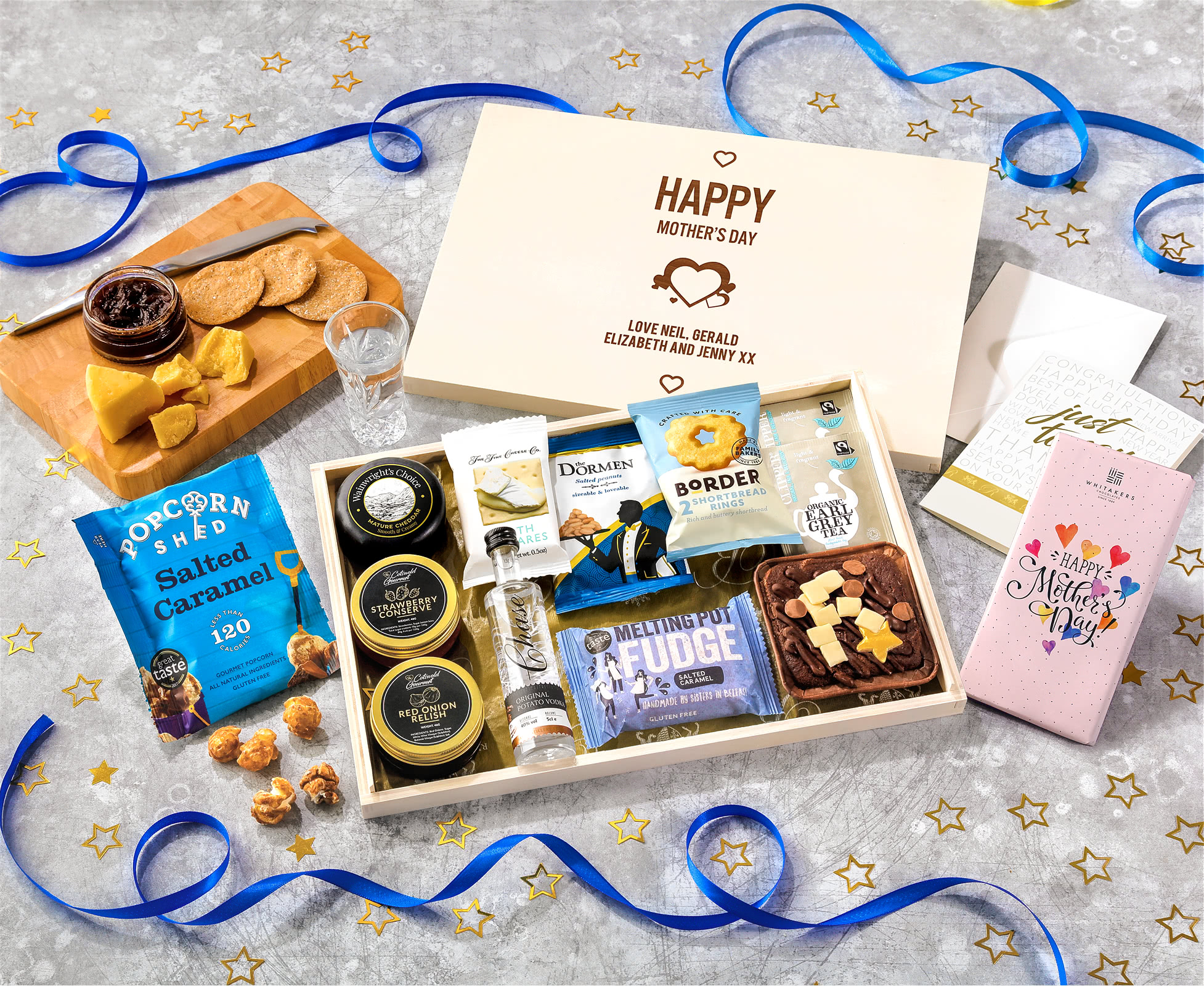 Mother's Day Biscuit, Cheese & Cake Tea Time Letterbox Hamper With Chase Vodka