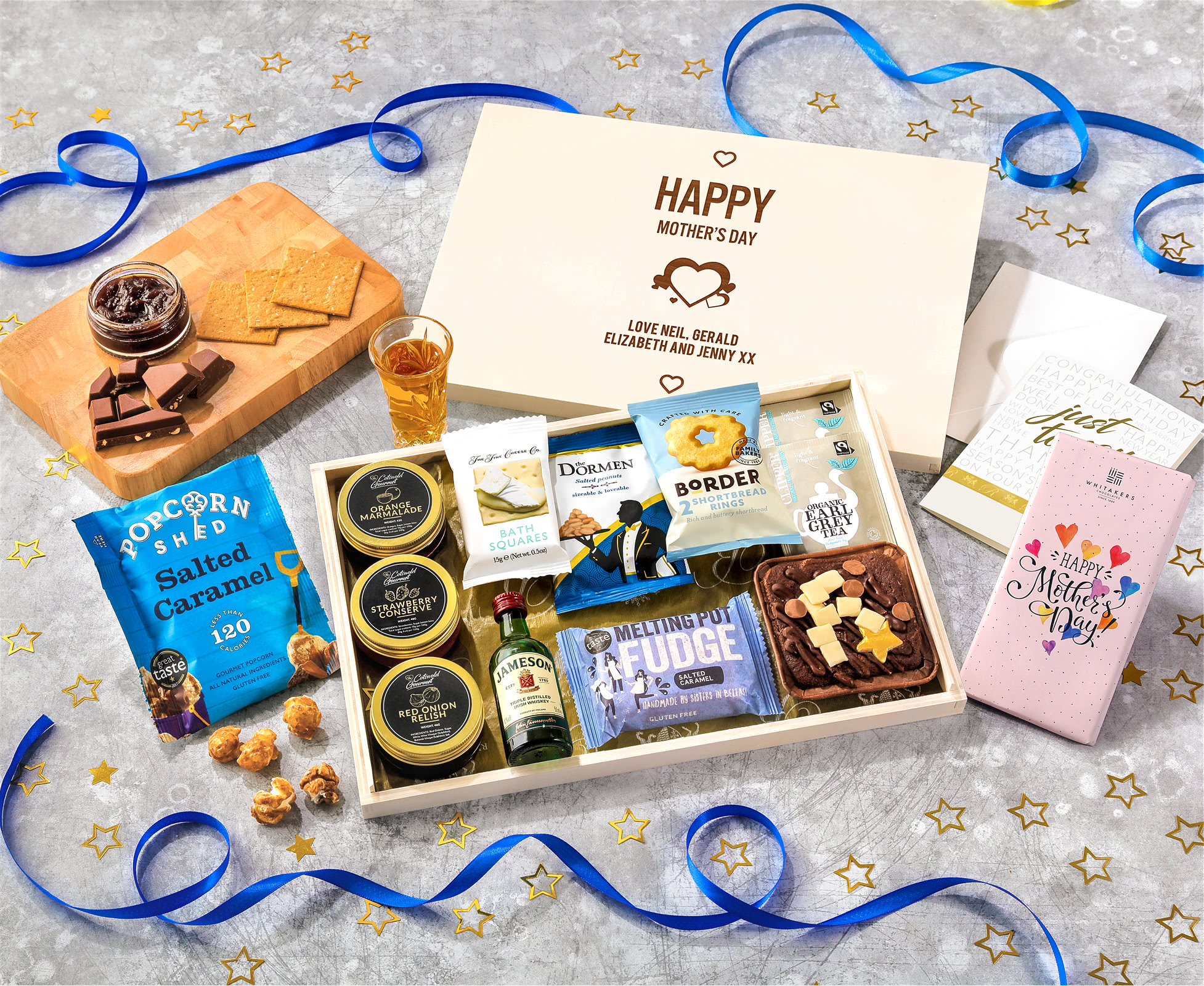 Exquisite Presentation: Arriving through your door in a deep letterbox with a custom lid and sturdy cardboard outer packaging, this hamper is thoroughly protected and delightfully presented. Their selection couldn't be more perfect, from the Bath Squares made by The Fine Cheese Co. to the gourmet salted caramel popcorn from Popcorn Shed.