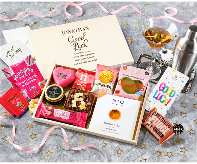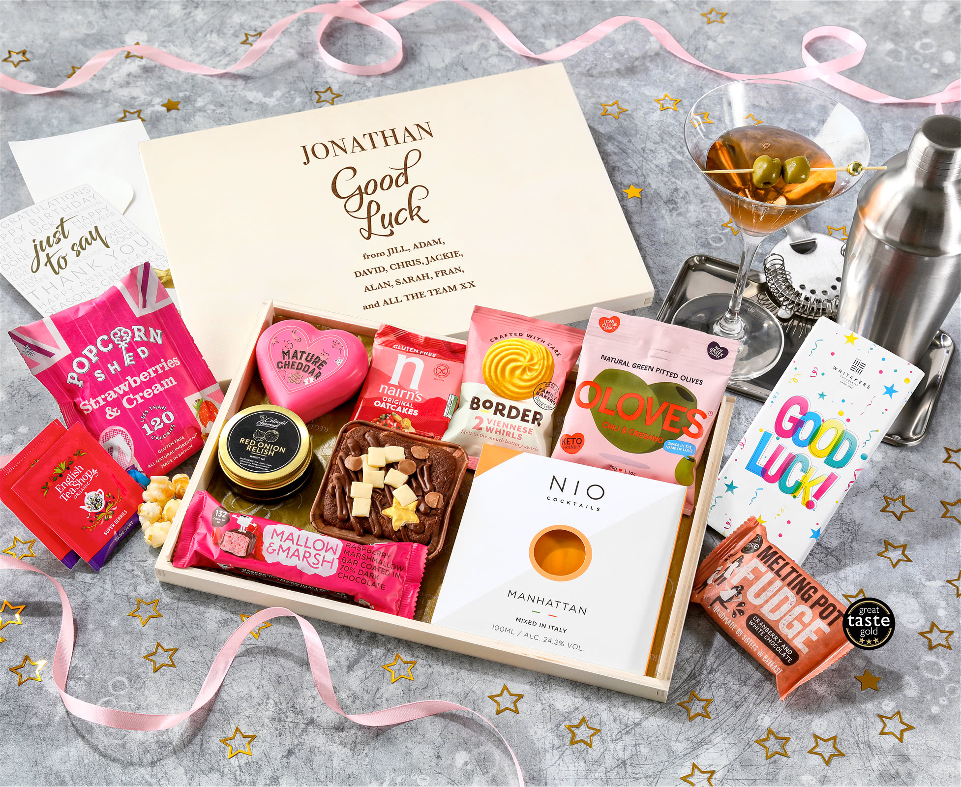 Good Luck Pink Cocktail & Cheese Letterbox Hamper With Manhattan