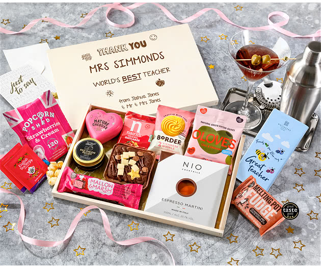 Great Teacher Pink Cocktail & Cheese Letterbox Hamper With Espresso Martini