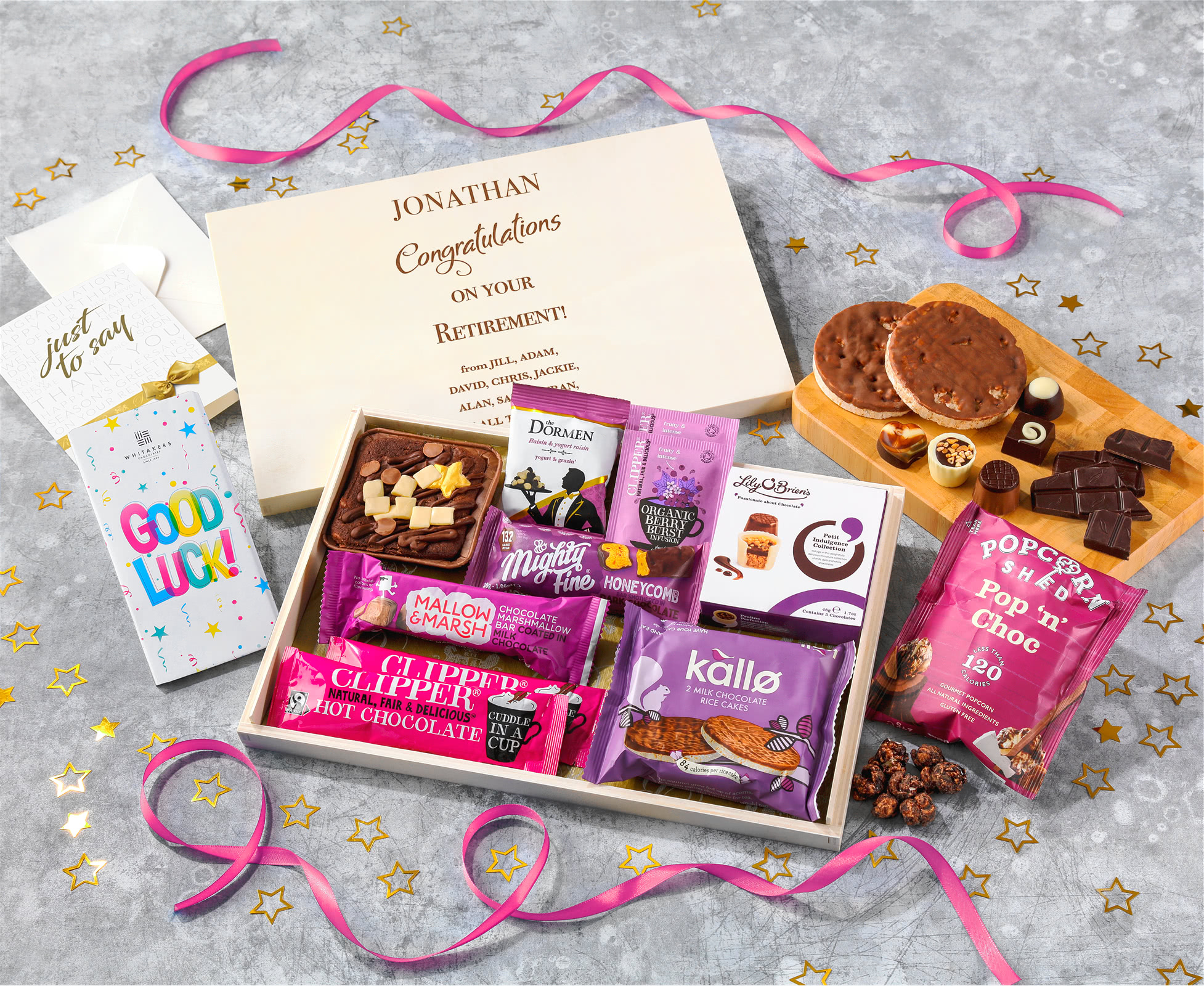 Retirement Hot Chocolate, Cake & Sweet Treat Letterbox Hamper