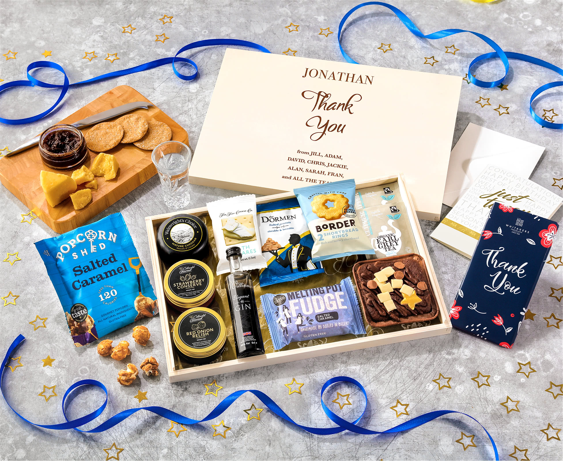 Thank You Biscuit, Cheese & Cake Tea Time Letterbox Hamper With Williams Gin