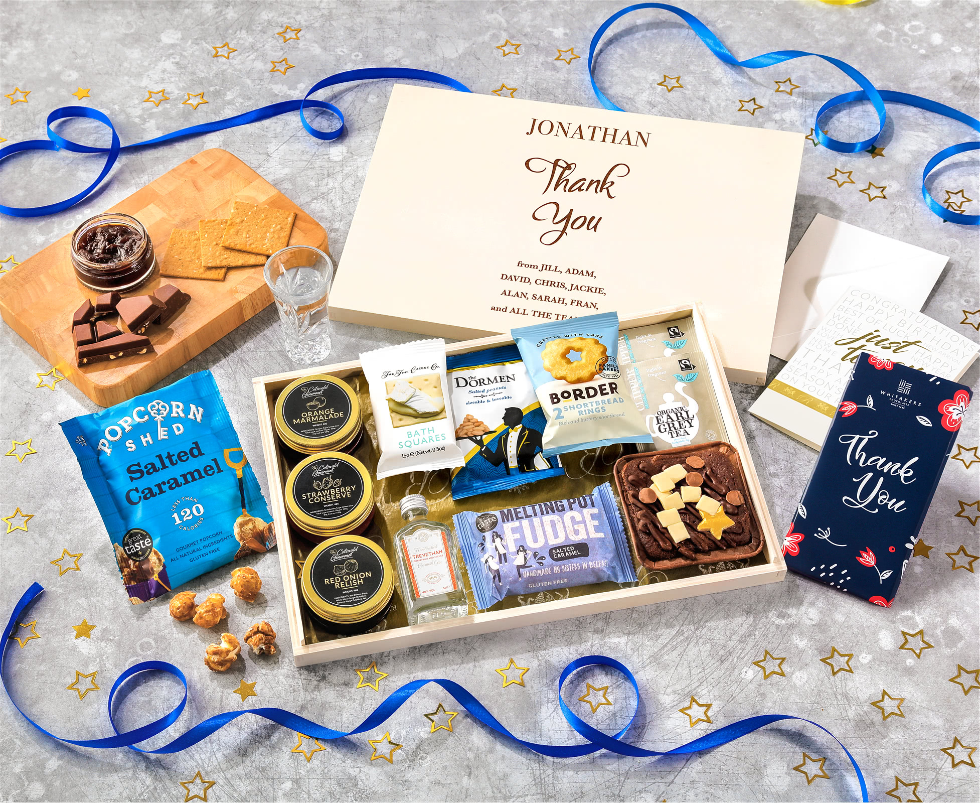 Thank You Tea Time Cake, Chocolate & Nibbles Letterbox Hamper With Cornish Gin