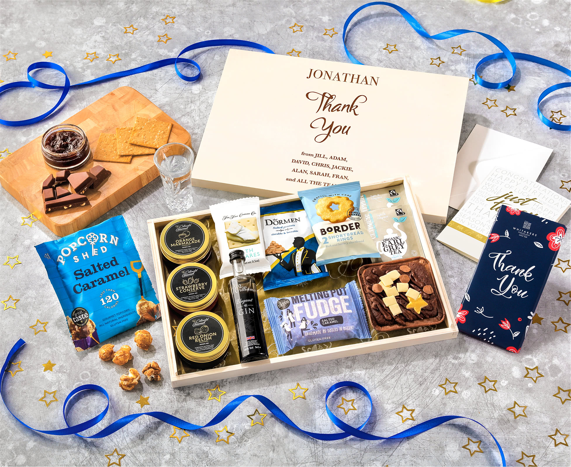 Thank You Tea Time Cake, Chocolate & Nibbles Letterbox Hamper With Williams Gin