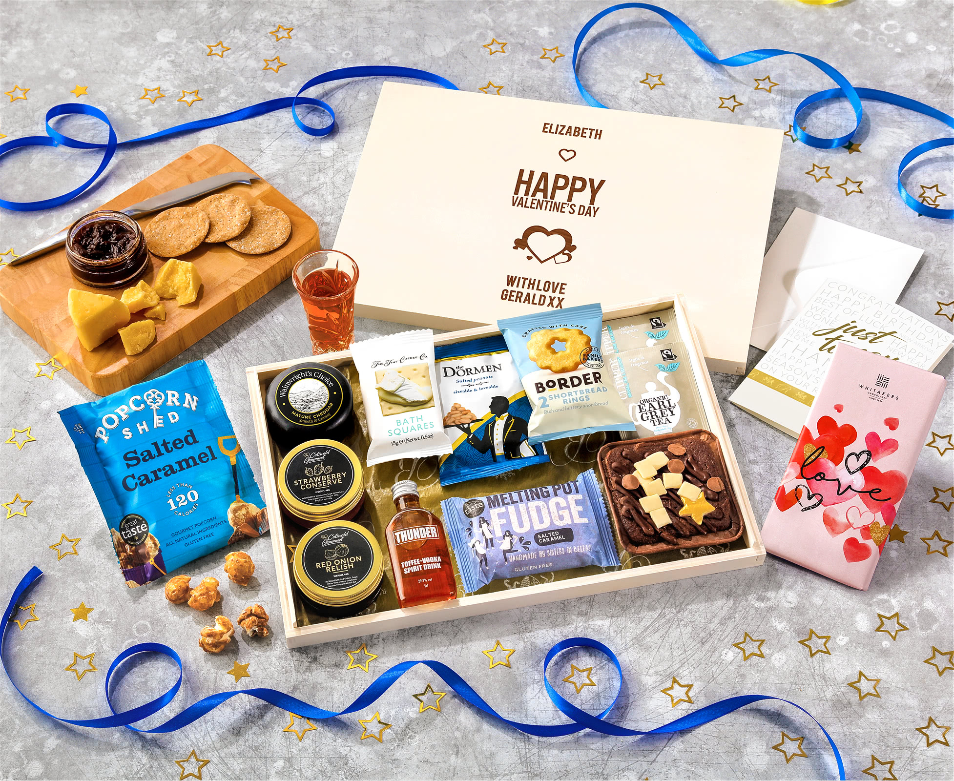 Artisan Spirits & Gourmet Treats: This exceptional collection features Thunder Toffee Vodka as its centrepiece, perfectly complemented by Wainwright's Choice Black Waxed Farmhouse Cheddar and Cotswold Gourmet Red Onion Relish. The Fine Cheese Co Bath Squares pair beautifully with Cotswold Strawberry Conserve, whilst The Original Cake Company's Mini Square Chocolate Cake and Tony's Chocolonely Milk Chocolate satisfy any sweet tooth.