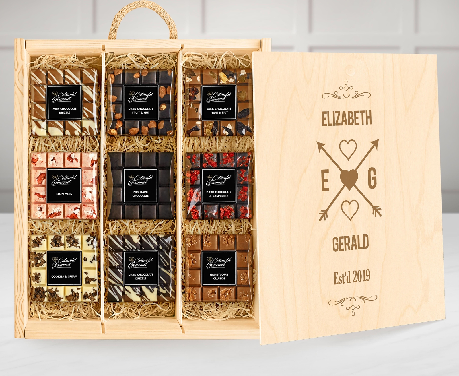 Another year of love and laughter shared with your one and only deserves an extra special celebration. If you're looking for a sumptuous gift that both you and your other half can enjoy together, the Anniversary Large Personalised Variety Chocolate Tasting Experience Gourmet Bars is a truly romantic choice. This anniversary hamper makes for a very welcome addition to an intimate date night at home.