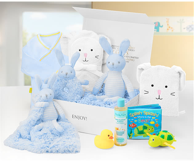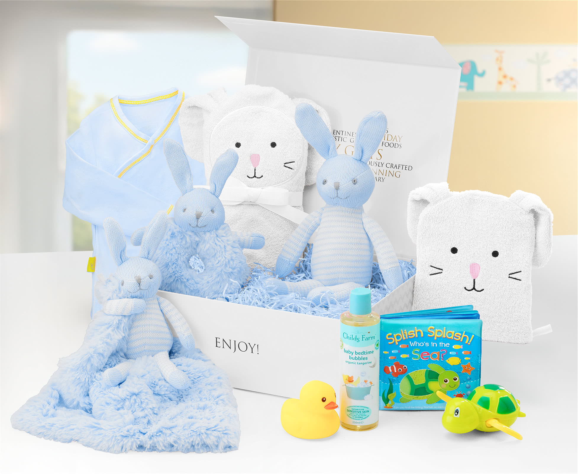 "Stripy Rabbit" Premium Baby Bathtime Hamper Gift Box in Blue