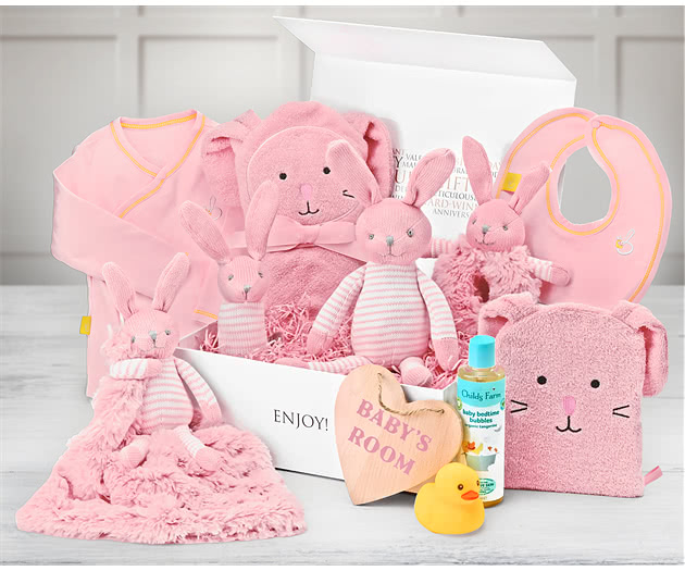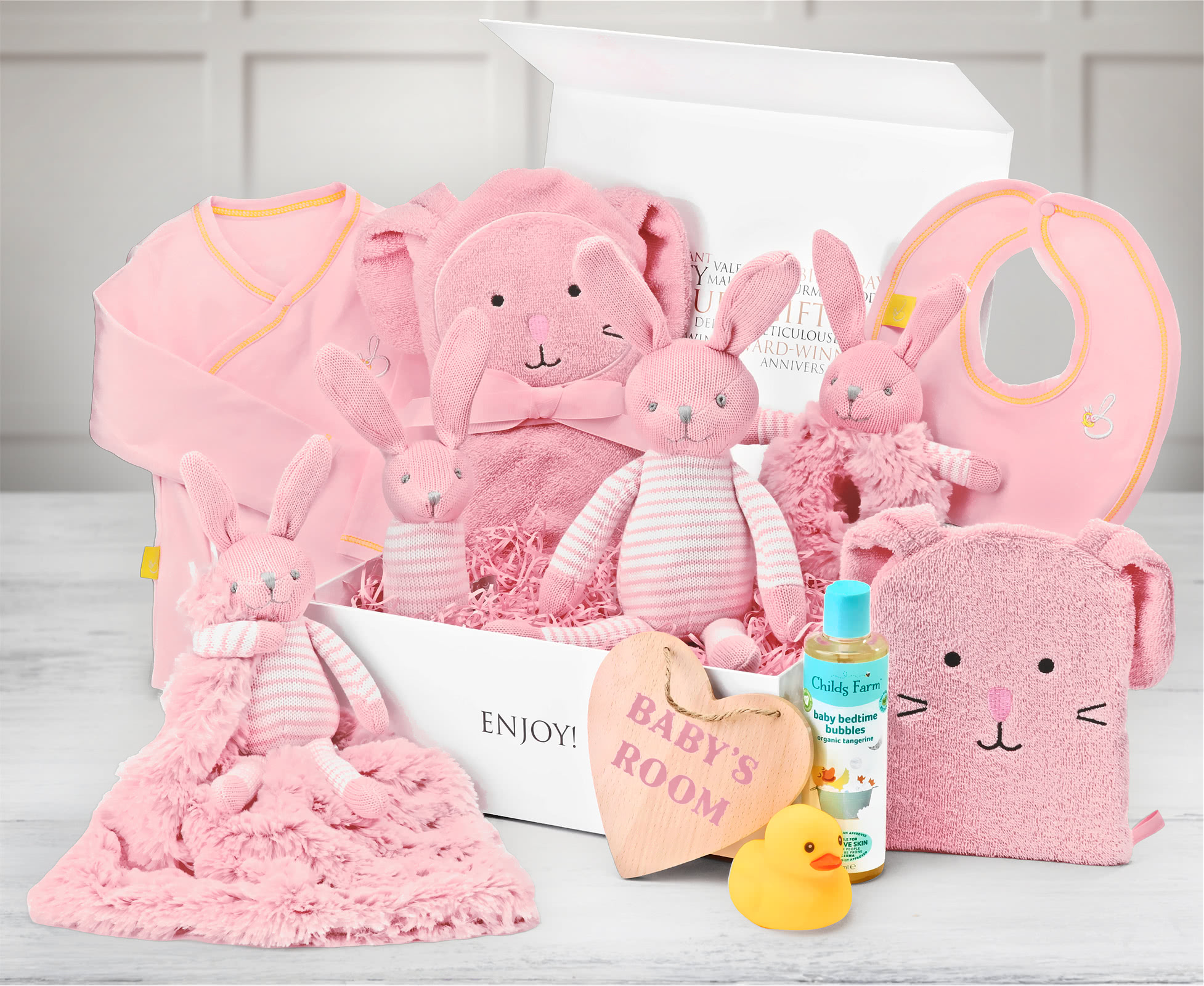 "Stripy Rabbit" Premium Baby Hamper Gift Box in Pink