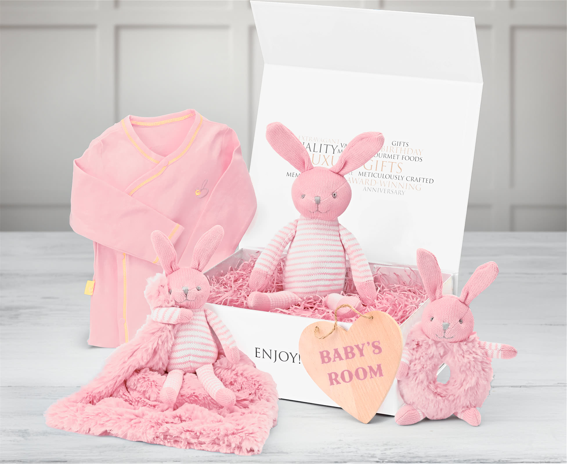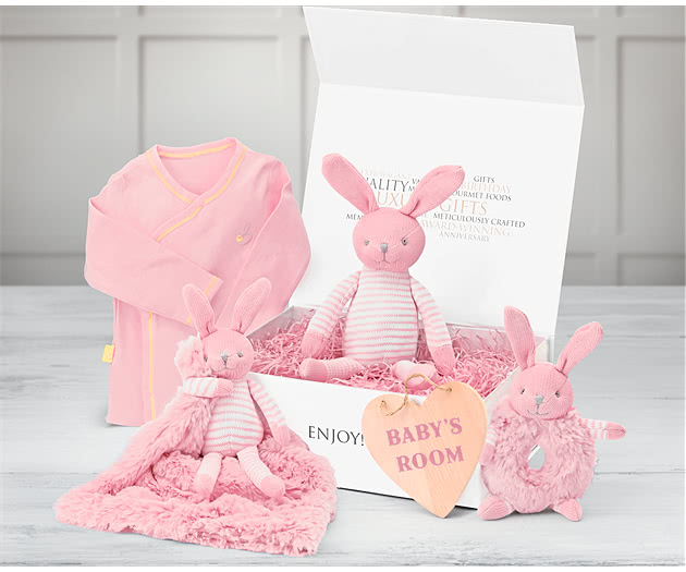 "Stripy Rabbit" Standard Baby Hamper Gift Box in Pink