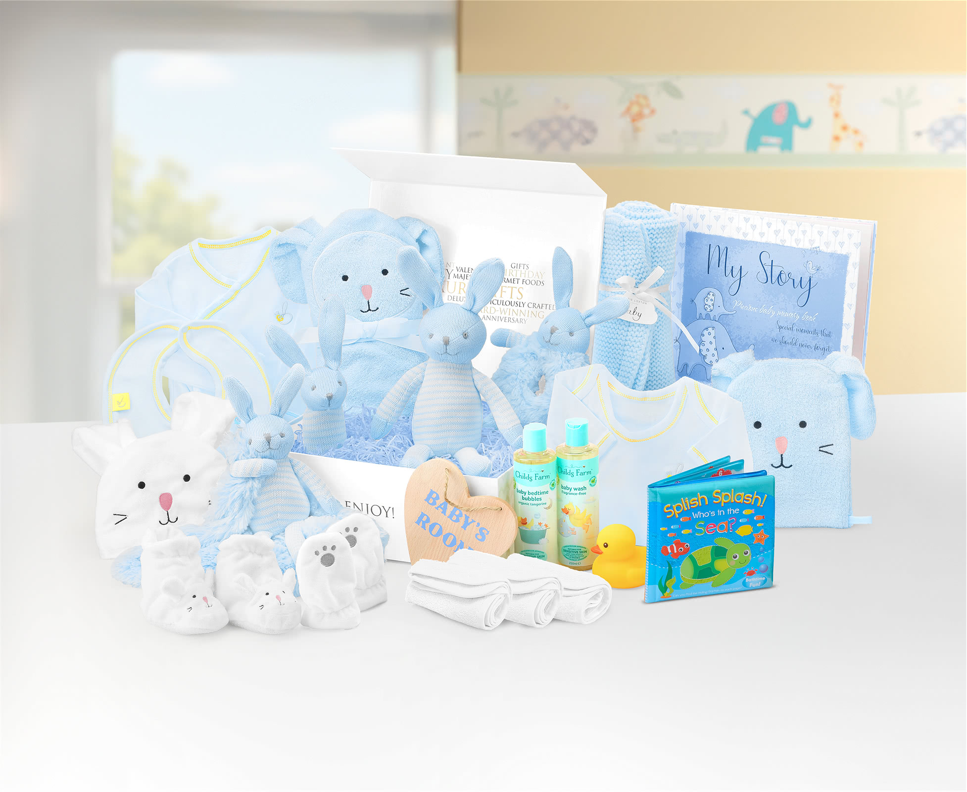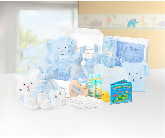 "Stripy Rabbit" Ultimate Baby Hamper Gift Box in Blue