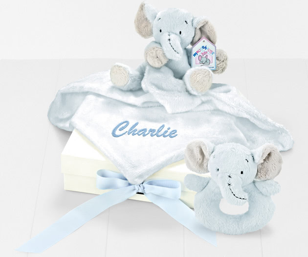 • 1Mousehouse, "Blue Nursery Elephant" Personalised Blanket