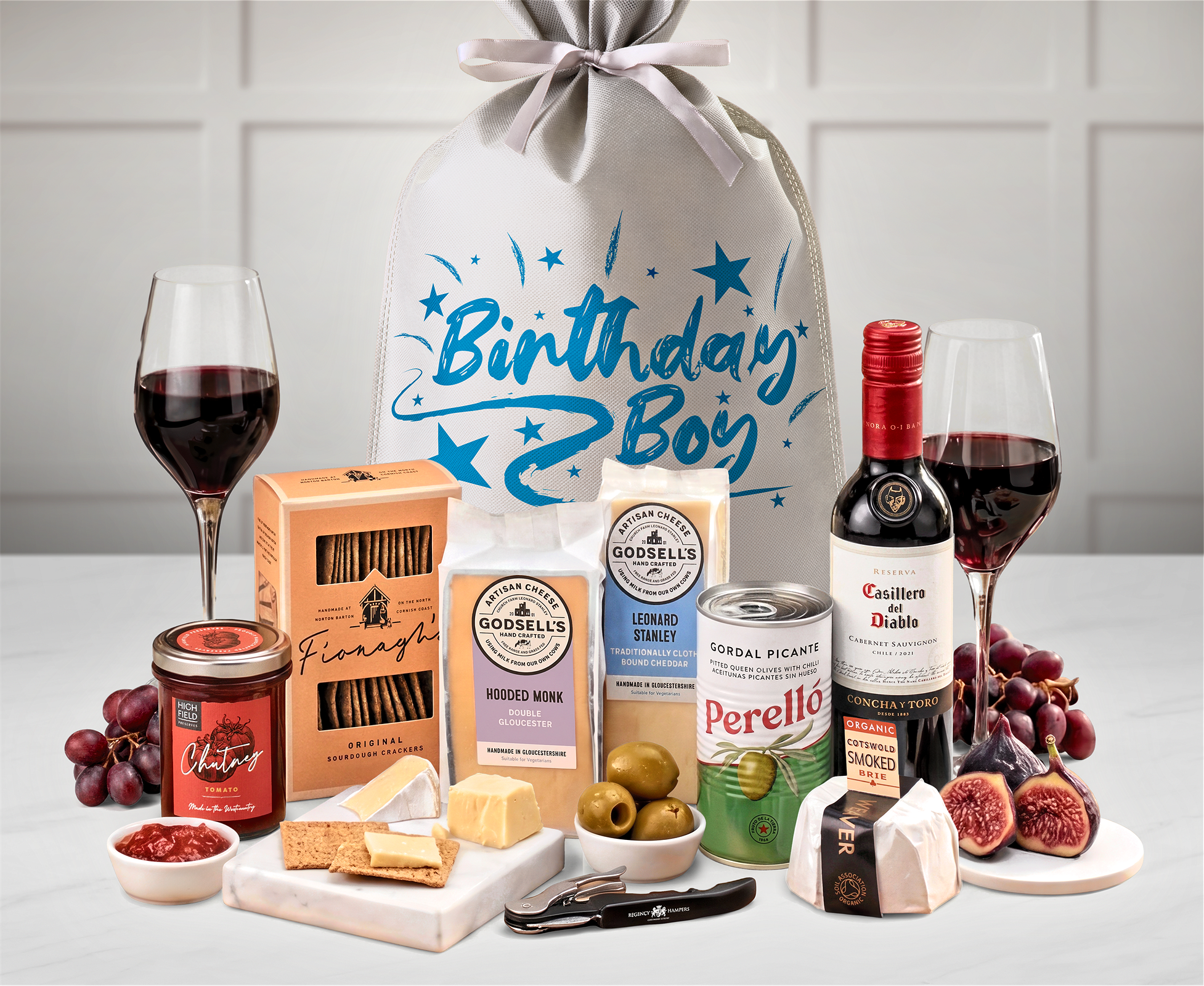 Birthday For Him Cotswold Artisan Cheese & Wine Tasting Gift with Red Wine