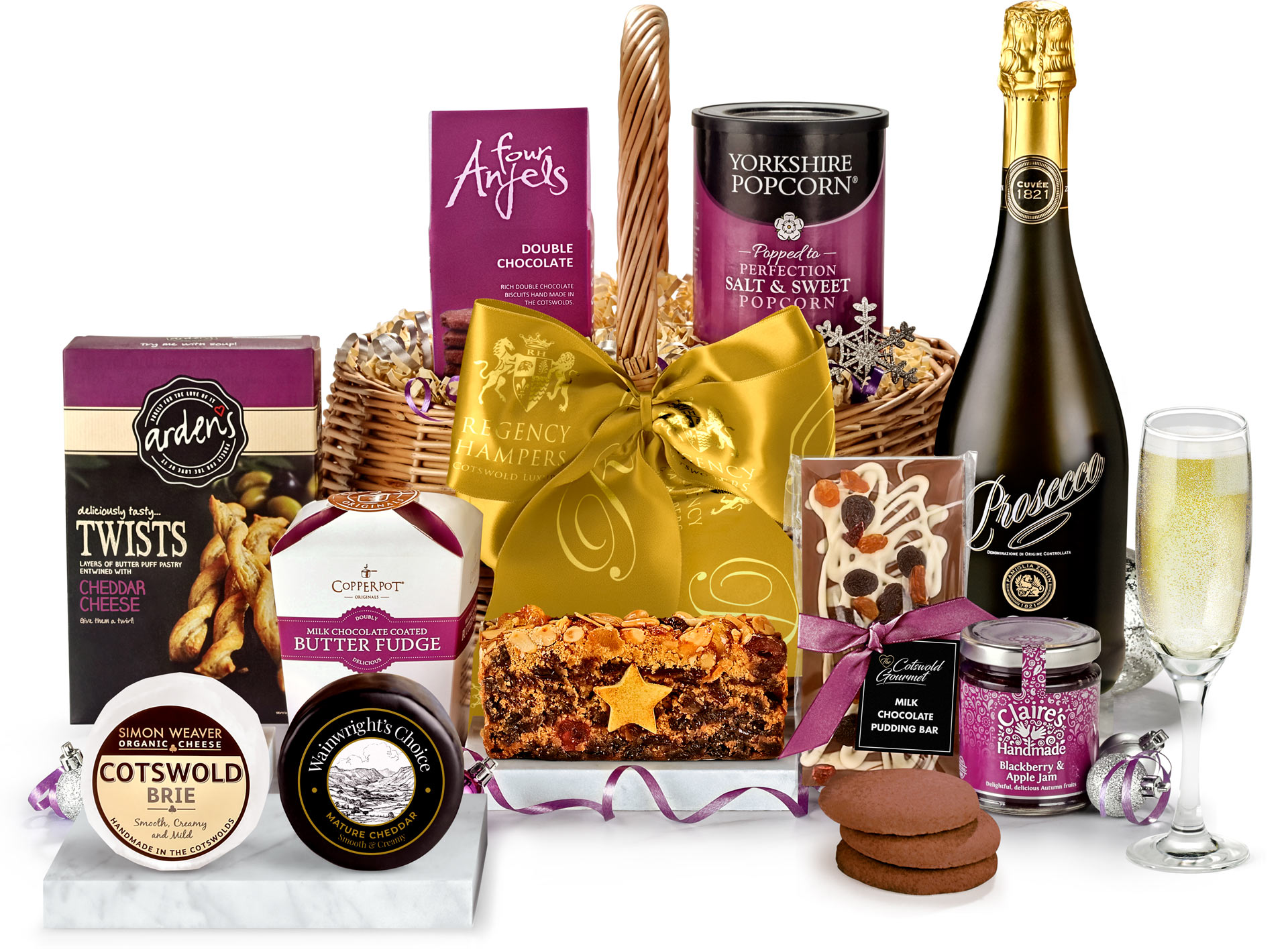 At Regency Hampers, we have Christmas cheese gift baskets of all shapes and sizes. Delight someone this year, or just be the host with the most with Christmas hampers full to the brim with hand-selected nibbles like shortbread, peanuts, truffles and biscuits, complementing cheddar, brie and more from top local cheesemakers.