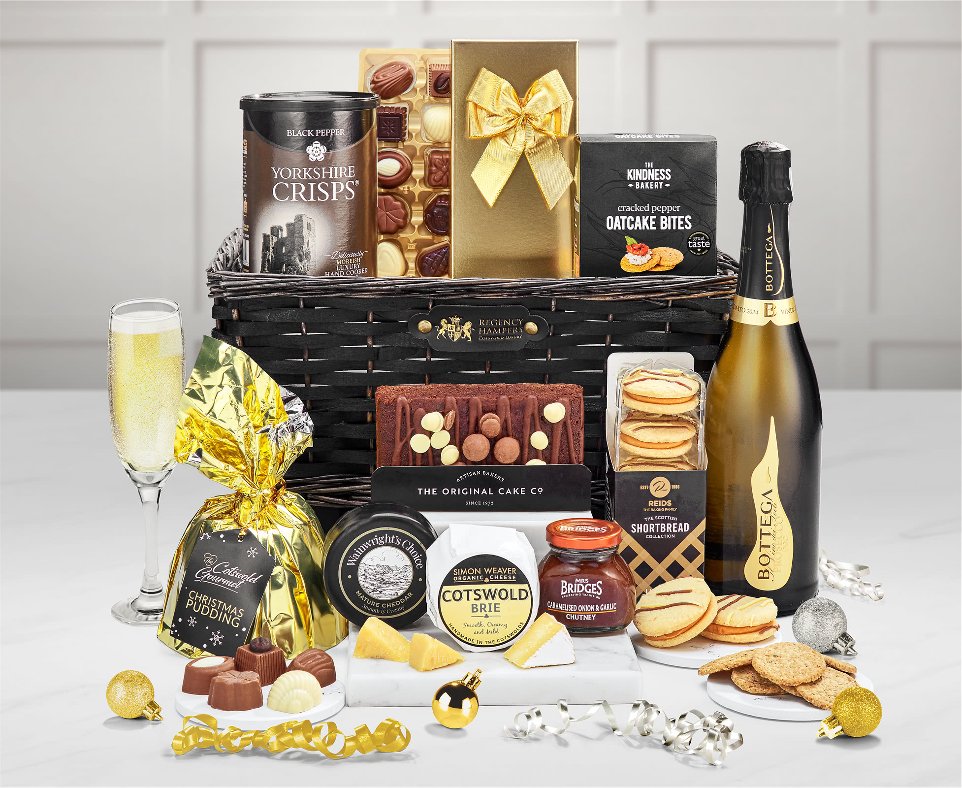 Festive Fizz and Merriment: At the centre of this gift basket sits a bottle of Bottega Millesimato Spumante Brut Prosecco. It's the sort of drink people reach for when they want fizz and elegance, with bubbles that feel crisp for that traditional Christmas celebration feeling.