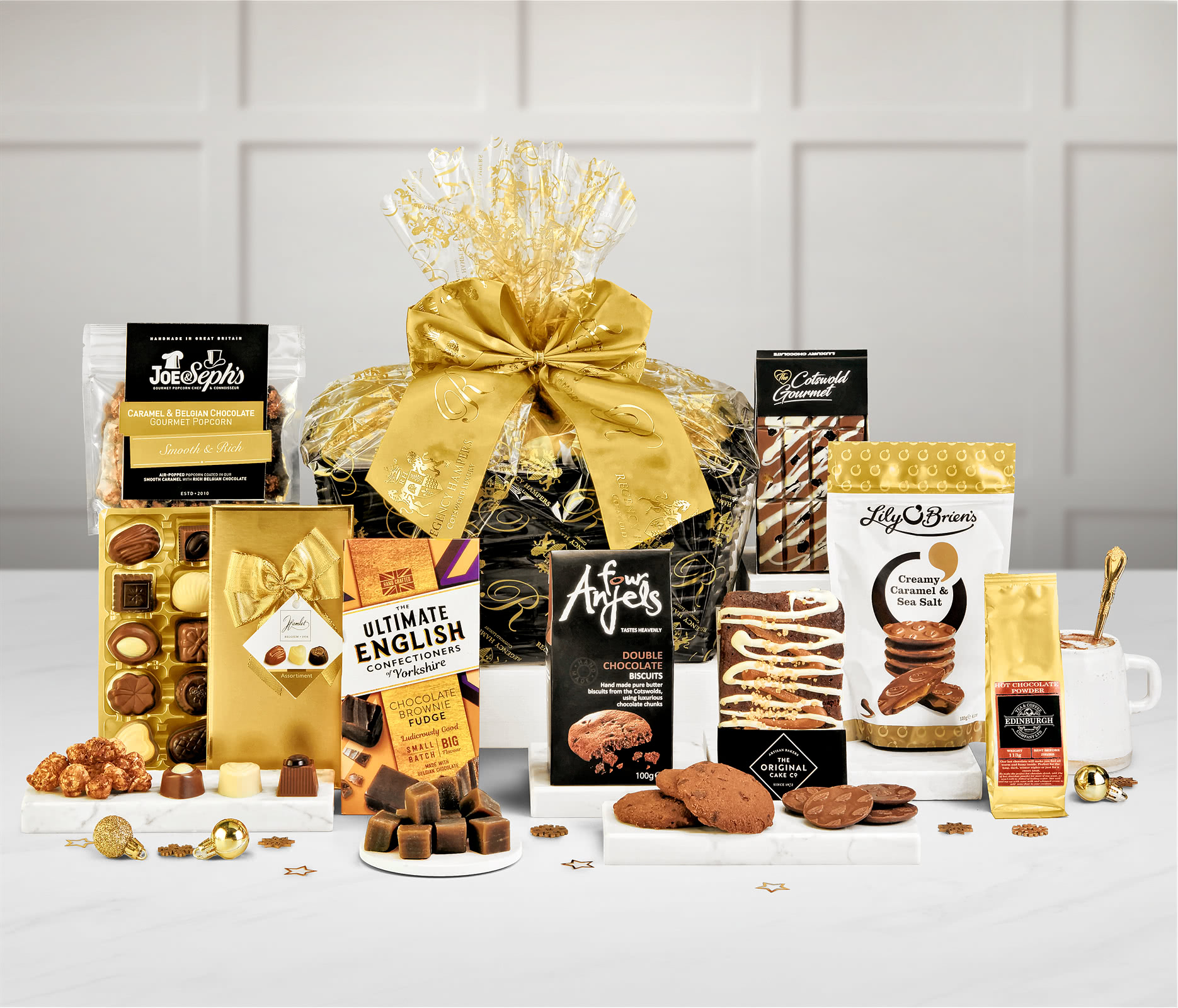 Premium Chocolate Collection: Indulge in eight specialist chocolate treats carefully curated for the ultimate cocoa experience. From Joe & Seph's gourmet popcorn drizzled with Belgian chocolate to Hamlet's deluxe pralines, each item has been selected for its exceptional quality. The collection includes artisan brownies, creamy Irish caramels with sea salt, and rich Edinburgh hot chocolate, all beautifully presented in a hand-made willow tray.