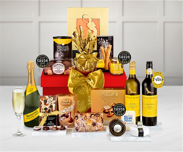 Exquisite Wine Selection: This luxury basket includes Mionetto Yellow Label Prosecco and Wolf Blass Yellow Label wines, offering both a crisp Sauvignon Blanc and a rich Shiraz to complement any celebration, or for a refined and relaxing tipple on a mellow evening.