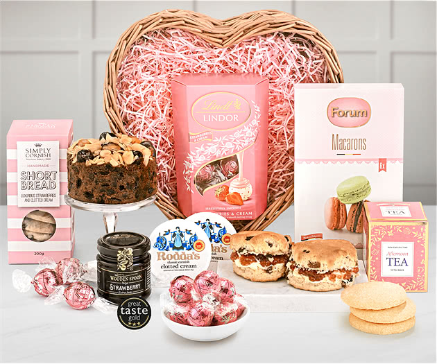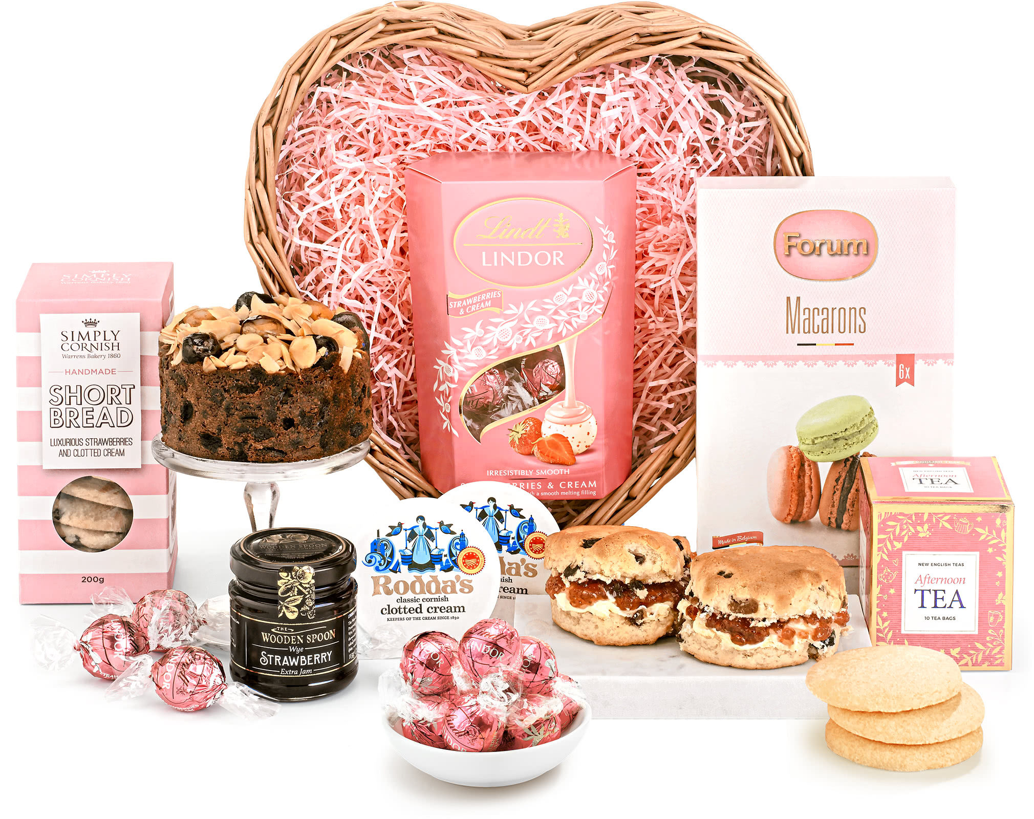 Indulge in the sumptuous delights of the Cream Tea Lovers Gift Set Hamper with Jam and Scones, a deluxe addition to our cake category that's sure to delight any tea enthusiast. Presented in a charming willow heart-shaped tray, this hamper is brimming with an assortment of treats perfect for elevating any afternoon tea experience. The Cream Tea Lovers Gift Set Hamper with Jam and Scones offers a delectable selection of goodies, including melt-in-the-mouth Forum Strawberry, Pistachio & Chocolate Macarons and buttery Simply Cornish Luxurious Strawberries & Clotted Cream Shortbread. Spread the included Wooden Spoon Strawberry Extra Jam on freshly baked sultana scones, and top with a dollop of Rodda's Cornish Clotted Cream for a truly authentic cream tea experience. For those with a sweet tooth, this hamper doesn't disappoint. Savour the rich flavours of The Cotswold Gourmet Round Dundee Cake, a traditional Scottish fruit cake that pairs wonderfully with a steaming cup of New English Tea Afternoon Blend. And for a final indulgence, the Lindt Lindor Strawberry & Cream Milk Chocolate Truffles offer a luxurious finish to this teatime feast. Whether enjoyed as a special treat at home or given as a thoughtful gift, this cake hamper is perfect for celebrating birthdays, anniversaries, or simply brightening someone's day. The contents are beautifully presented with a decorative ribbon and protected by a sturdy cardboard outer, ensuring they arrive in perfect condition. Elevate your cake and teatime offerings with the Cream Tea Lovers Gift Set Hamper with Jam and Scones, a truly British way to indulge in life's little pleasures. Shopping for a business? Regency offers generous discounts & free corporate branding for larger orders.