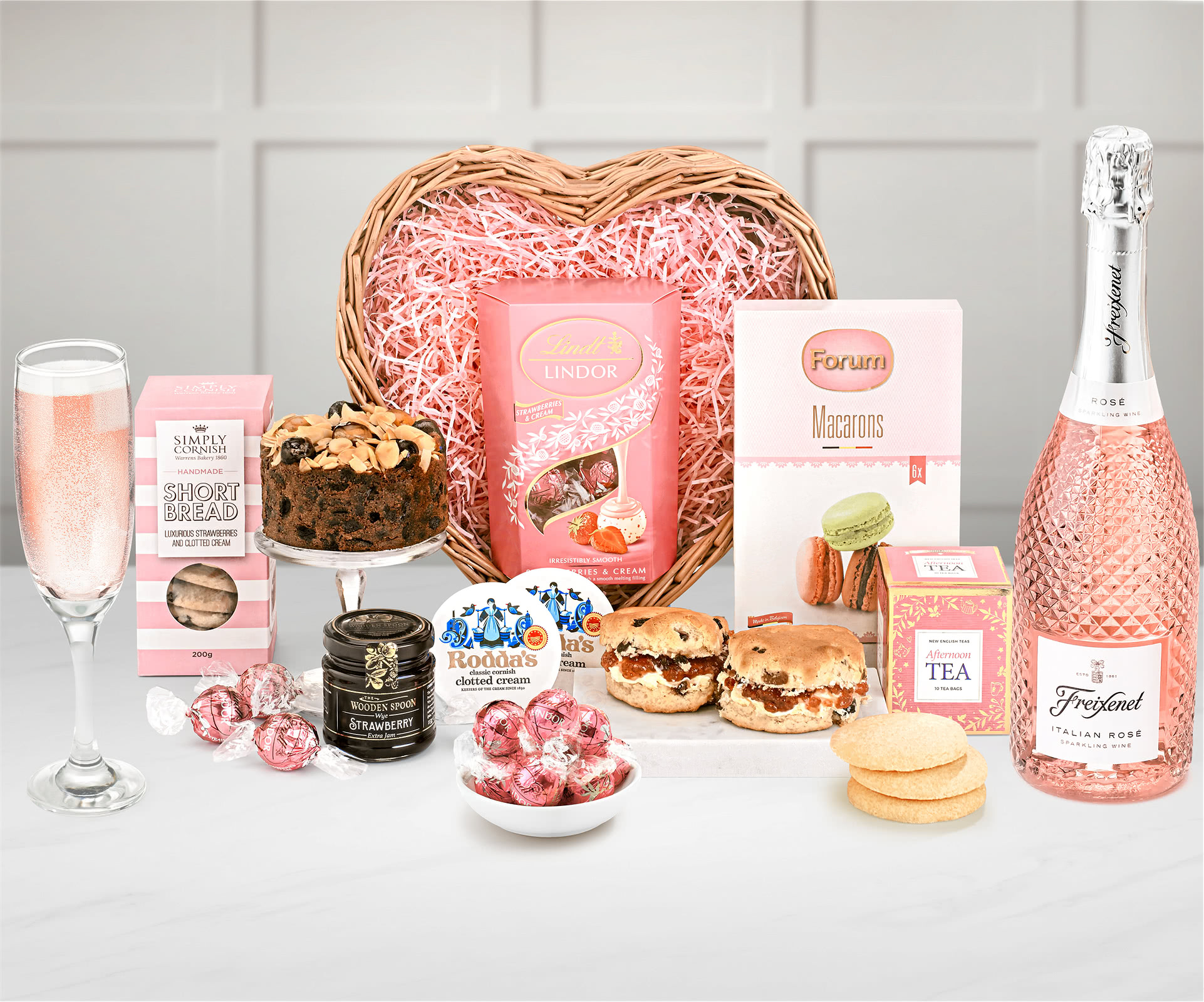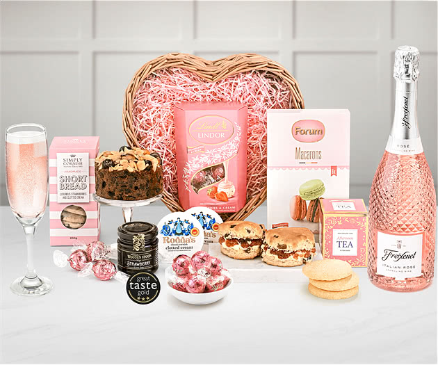 The Cream Tea Lover's Hamper With Jam & Scones comes in a beautiful willow heart-shaped tray that can be reused for storage or decoration. Inside, you'll find a selection of mouth-watering goodies, such as: