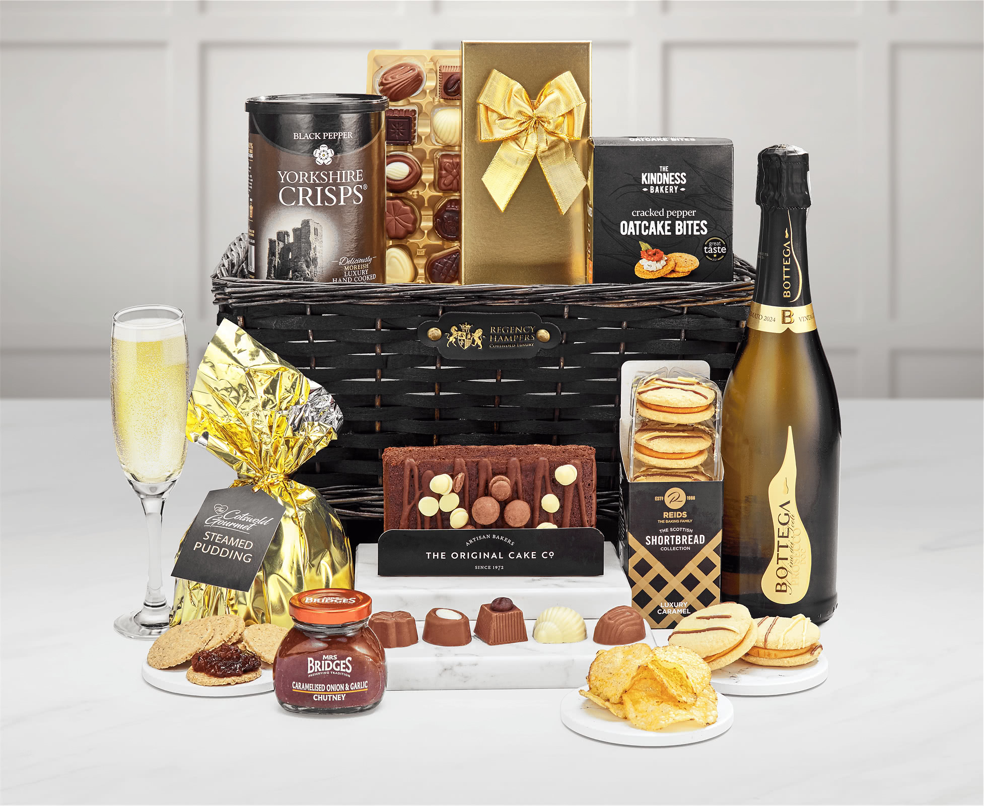 Premium Prosecco Experience: This collection centres around the extraordinary Bottega Millesimato Spumante Brut Prosecco. This sparkling wine is perfect for splendid gatherings, and partners beautifully with our choice selection of treats ranging from sweet and nutty to savoury and crunchy. The treats include Mrs Bridges Caramelised Onion Chutney, The Kindness Bakery Cracked Black Pepper Oatcake Bites, and Yorkshire Crisps Natural Sea Salt.