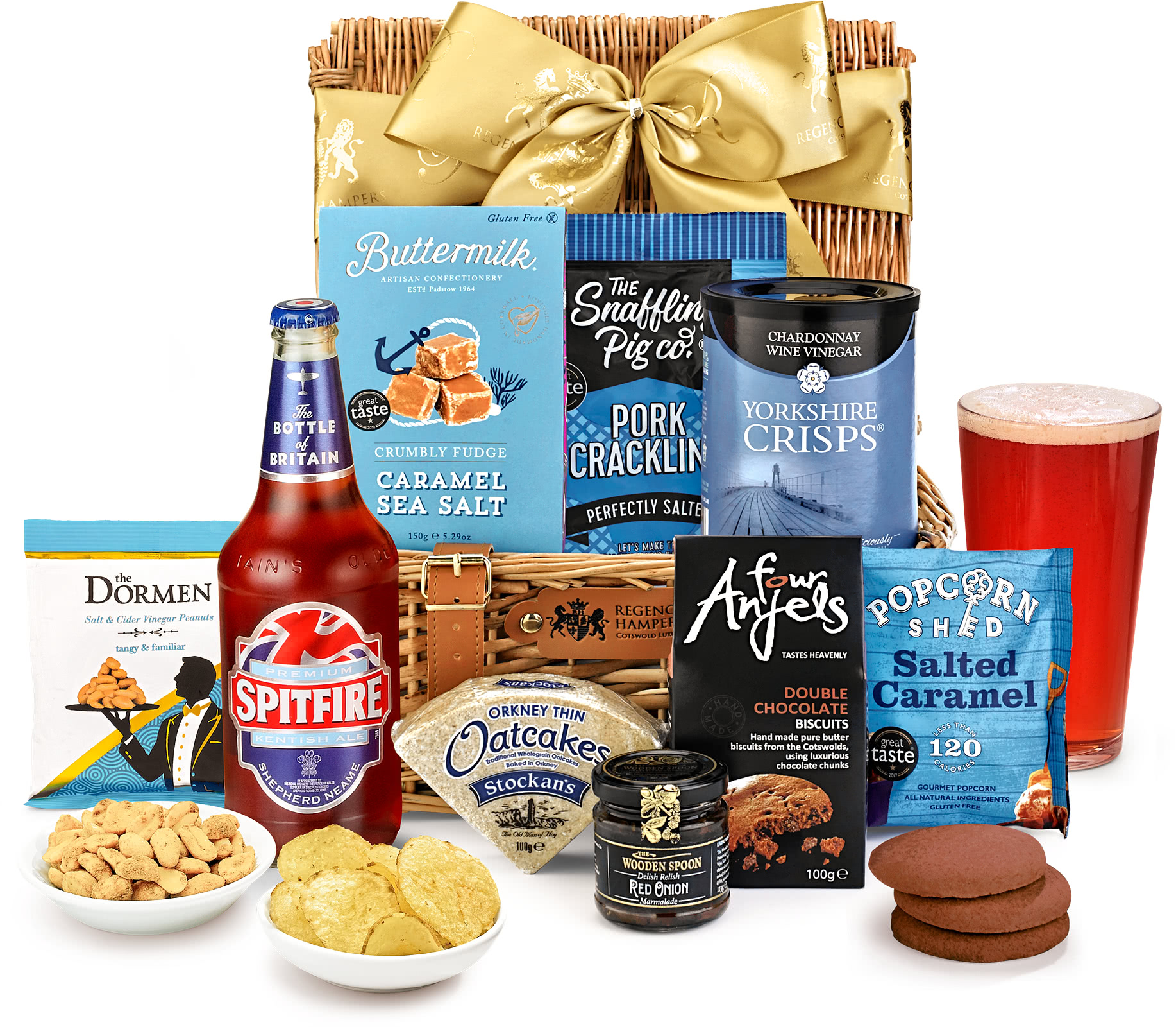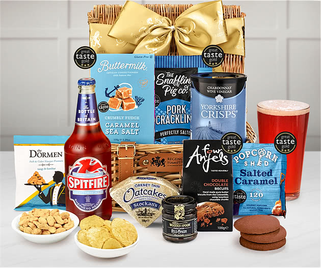 Are you looking for a gift hamper that will delight any beer lover? Whether it's for a birthday, an anniversary, a thank you, or just because, the Gentleman's Selection Hamper With Real Ale is the perfect choice. This hamper gift is packed with delicious treats that complement the smooth and refreshing Spitfire Ale, a classic British beer with a rich heritage. The hamper includes: