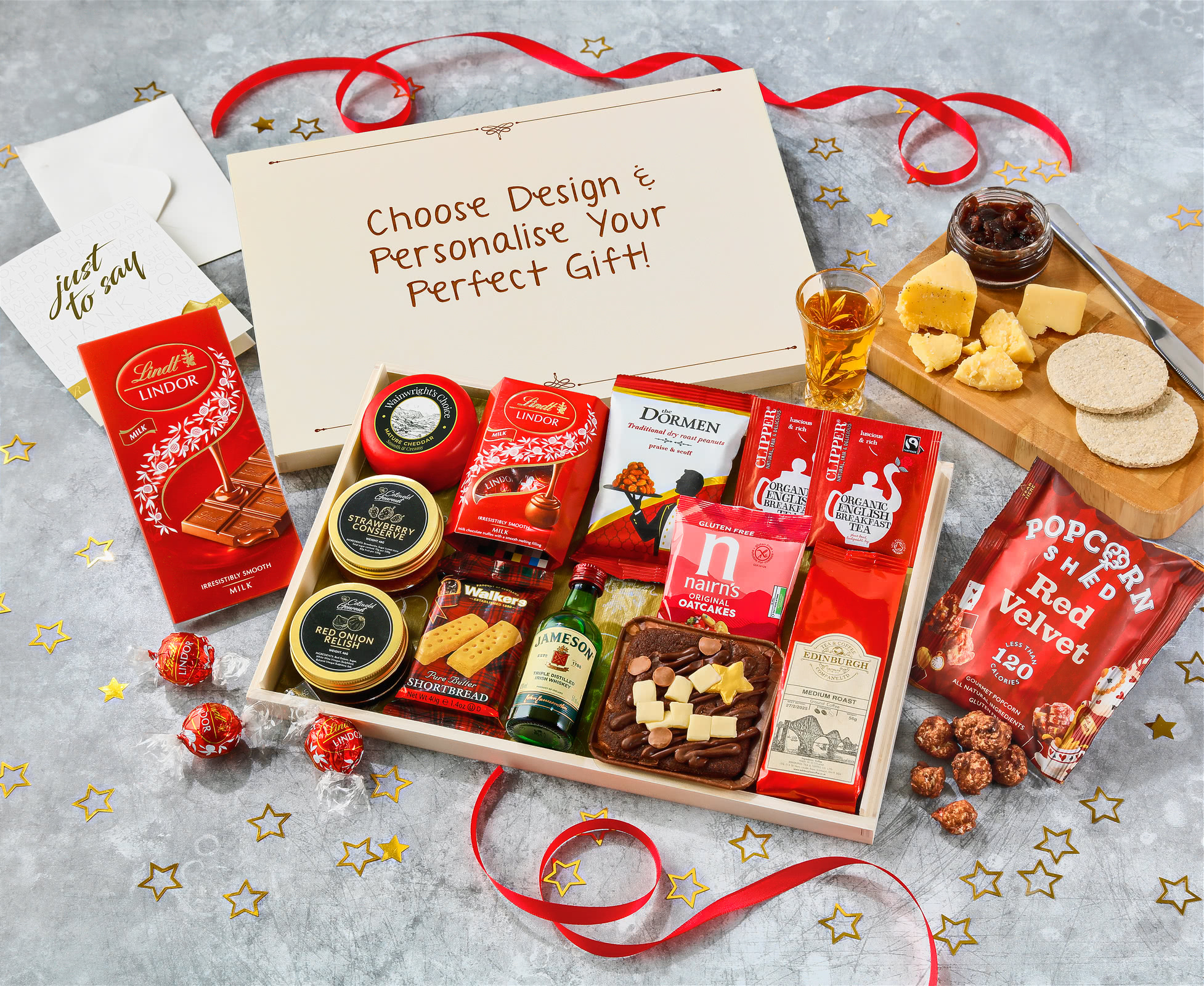 Thoughtful Gourmet Experience: Each item in the hamper, from Popcorn Shed's Red Velvet gourmet popcorn to Lindt Lindor chocolate truffles, represents exceptional quality. The hamper is then completed with English Tea Shop organic breakfast tea and Edinburgh medium roast coffee, making it an ideal gift for whiskey lovers, corporate clients, or anyone you want to celebrate with.