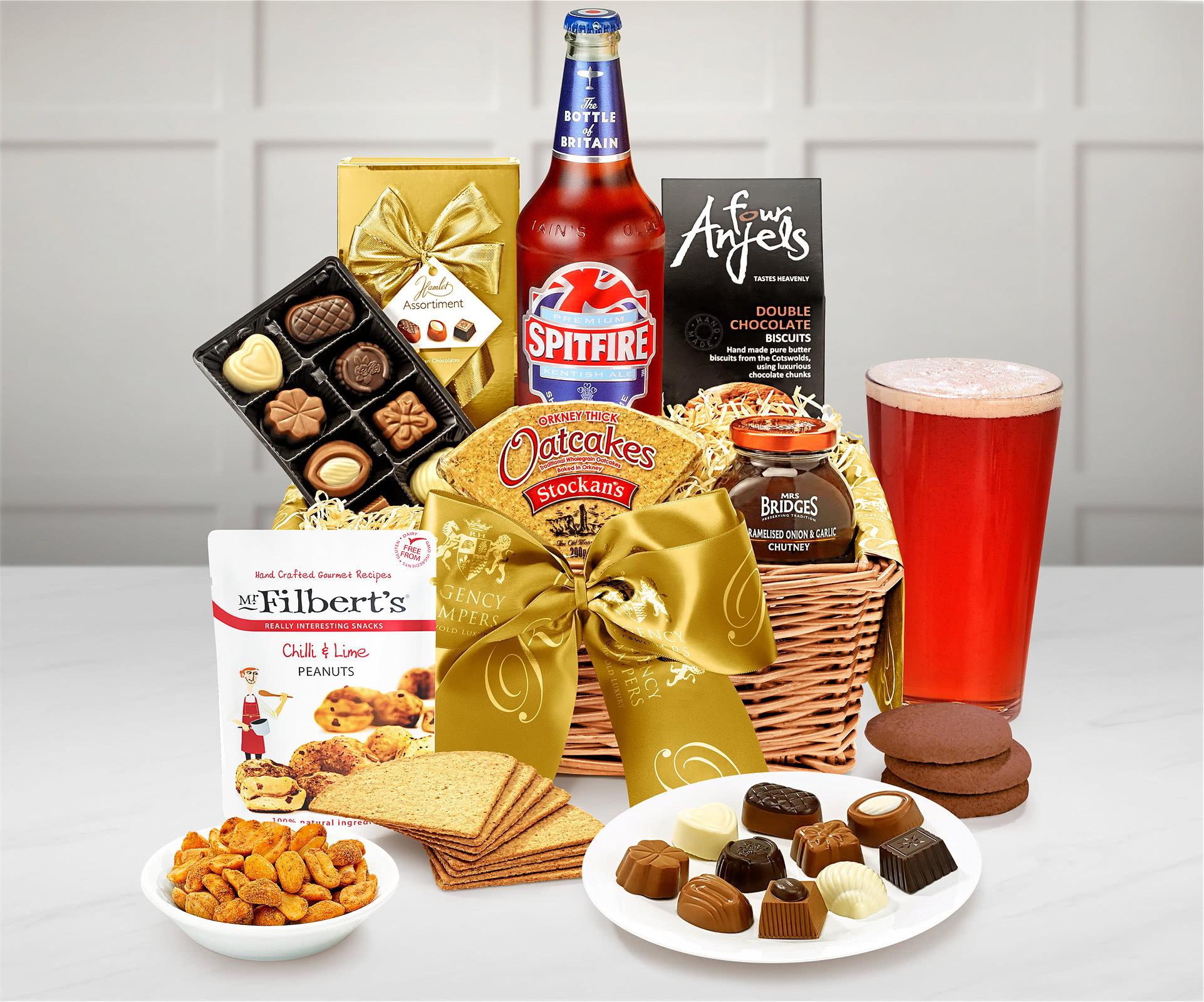 Speaking of delicious goodies, the Keats Hamper With Real Ale is stocked with some truly tasty treats. The Spitfire Ale, a 500ml bottle of real ale, is a must-try for any fan of the classic British brew. And for a little bit of savory snack action, there's Filbert's Chilli & Lime Peanuts, a zesty and addictive 40g bag of peanuts that are sure to satisfy your cravings.