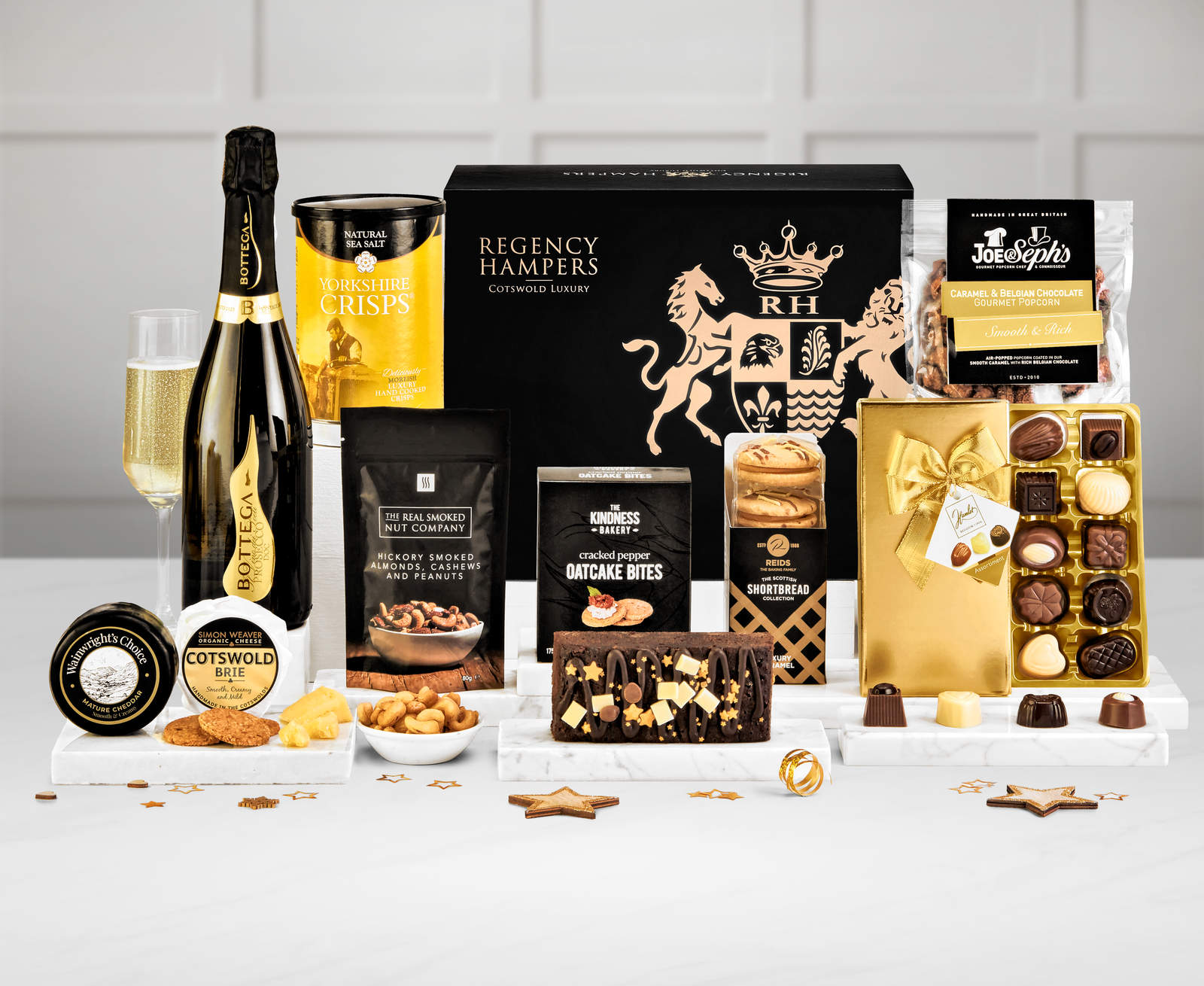 Premium Prosecco Experience: Bottega Millesimato Spumante Brut Prosecco forms the utterly delicious centre of this magnificent hamper, which is completed by a stunning selection of artisan cheeses, including Wainwright's Choice Vintage Mature Cheddar and Simon Weaver Organic Cotswold Brie. As if that weren't enough, they top things off with some incredible gourmet treats, including Joe & Seph's Caramel & Belgian Chocolate Popcorn and the Hamlet Belgian Chocolate Assortment.
